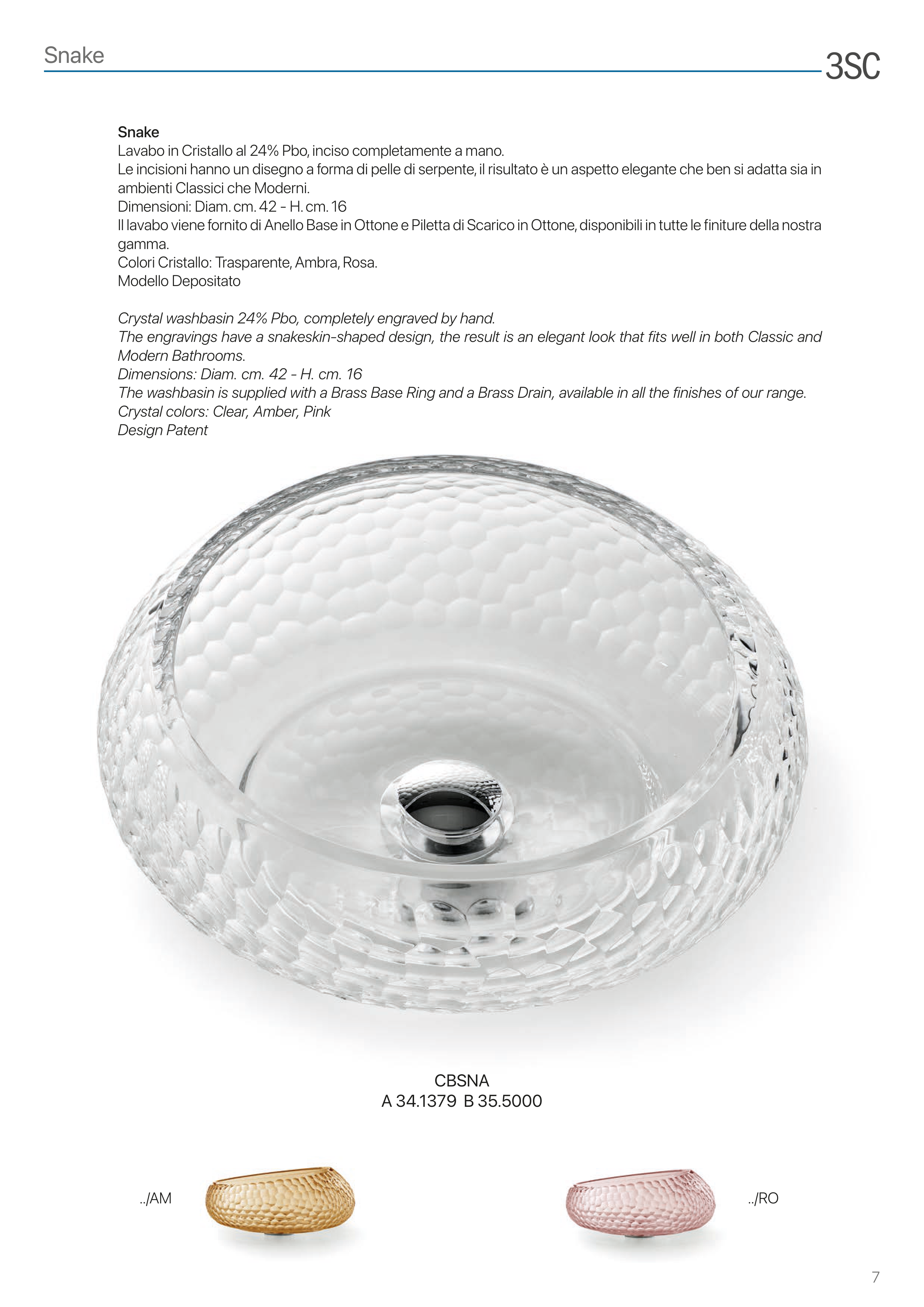 Colori Cristallo: Trasparente, Ambra, Rosa.