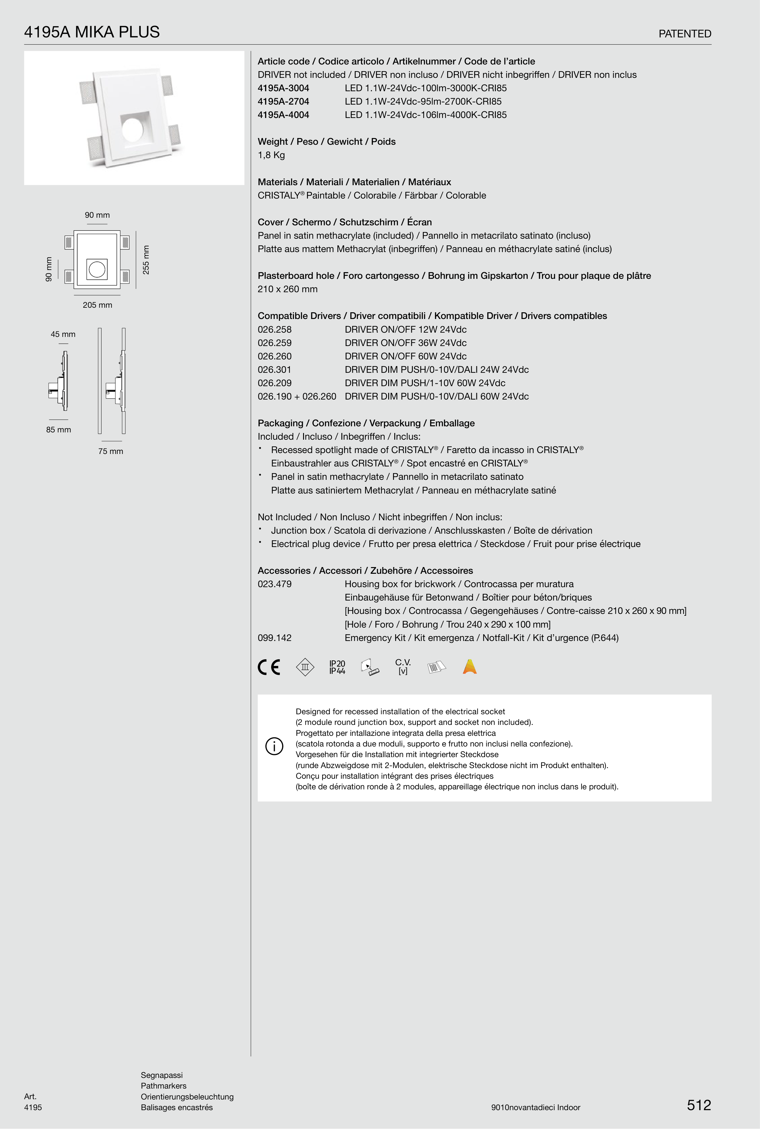 [Housing box / Controcassa / Gegengehäuses / Contre-caisse 210 x 260 x 90 mm]