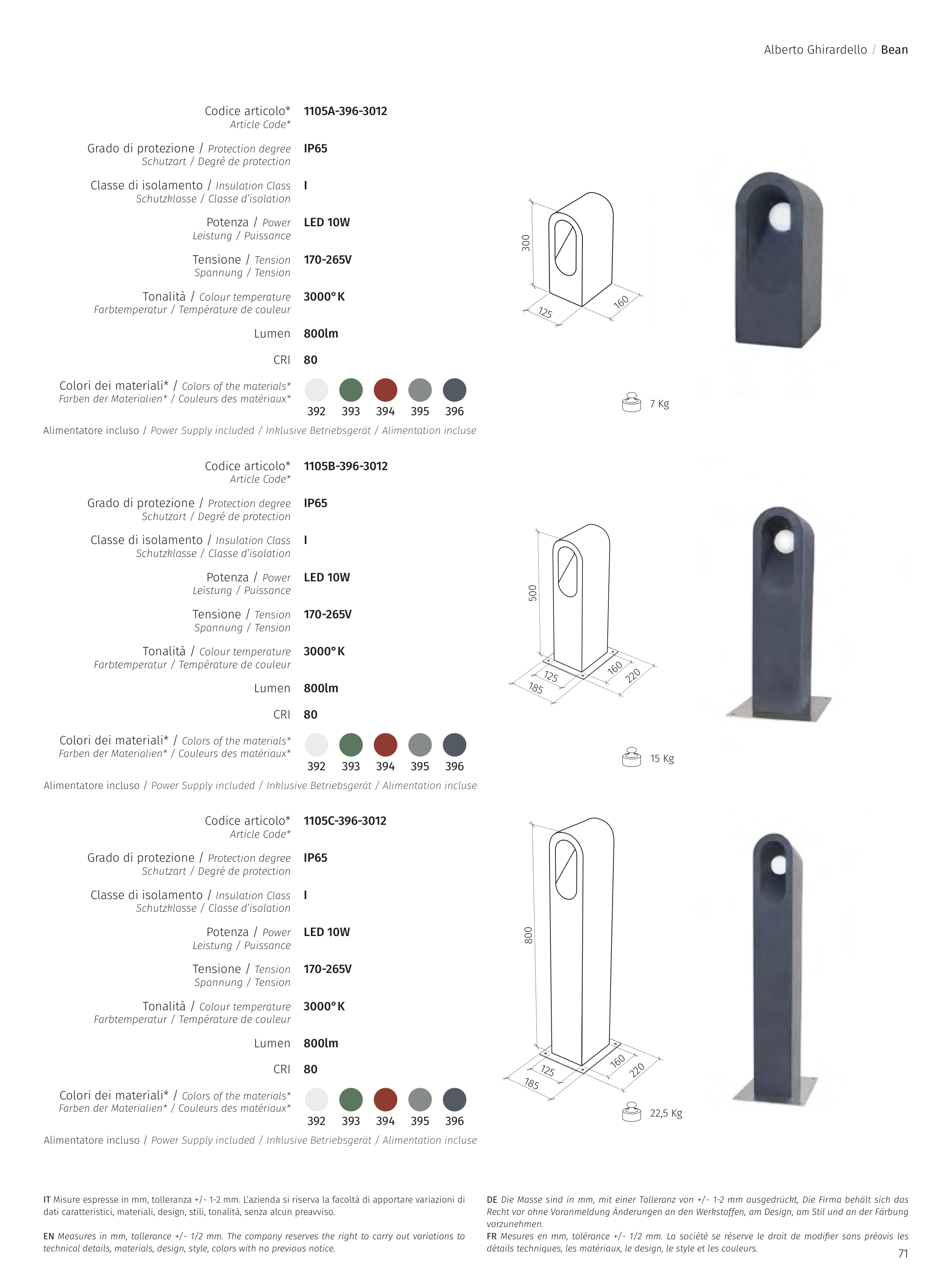 IT Misure espresse in mm, tolleranza +/- 1-2 mm. L’azienda si riserva la facoltà di apportare variazioni di