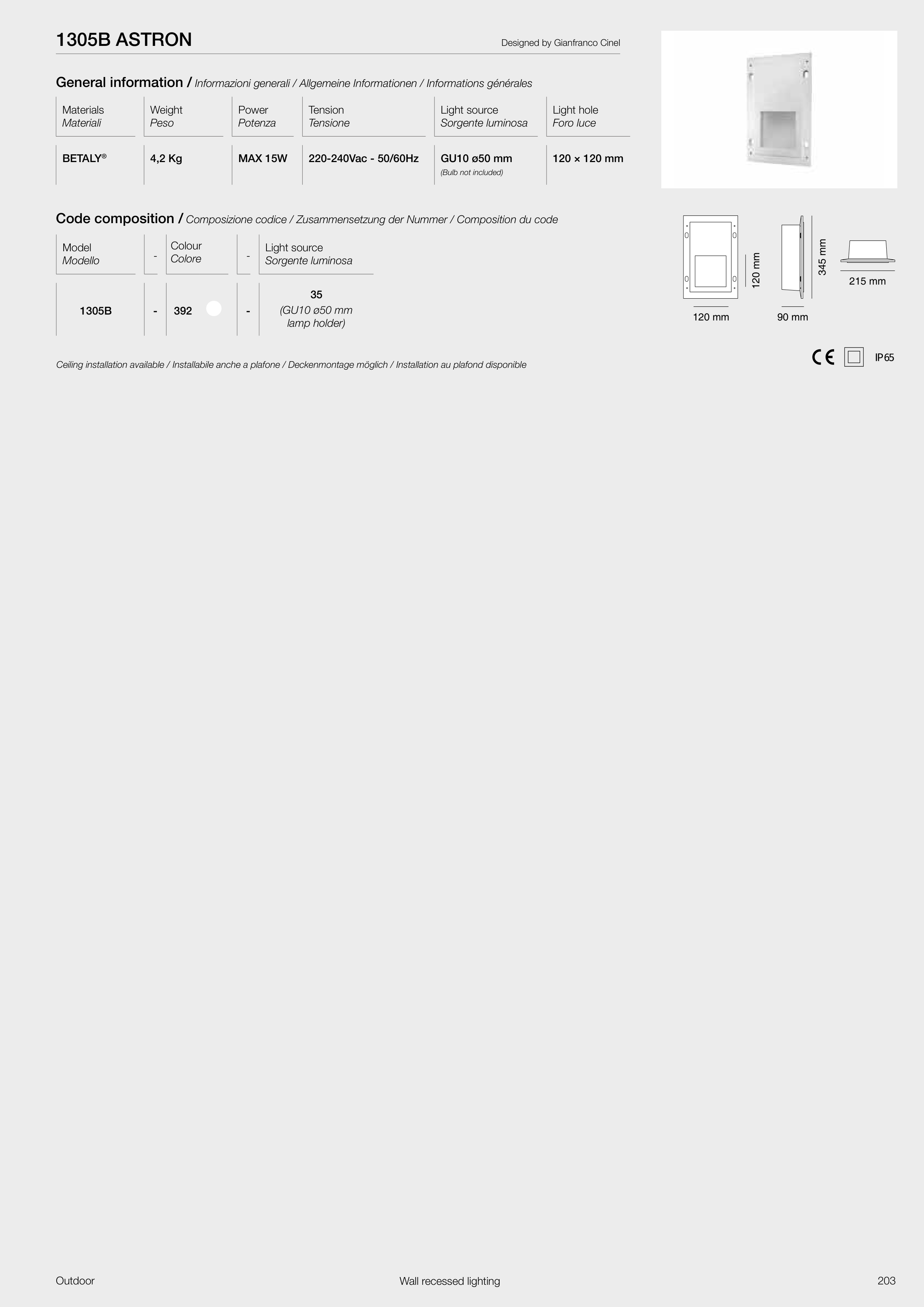 Ceiling installation available / Installabile anche a plafone / Deckenmontage möglich / Installation au plafond disponible