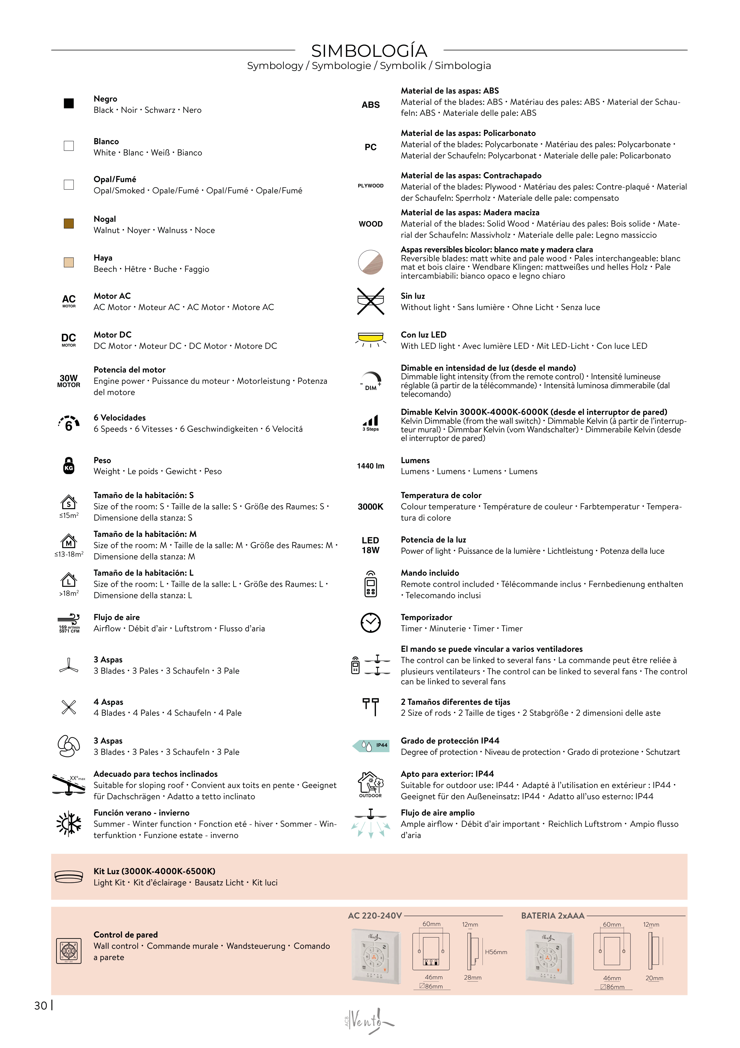 teur mural) · Dimmbar Kelvin (vom Wandschalter) · Dimmerabile Kelvin (desde