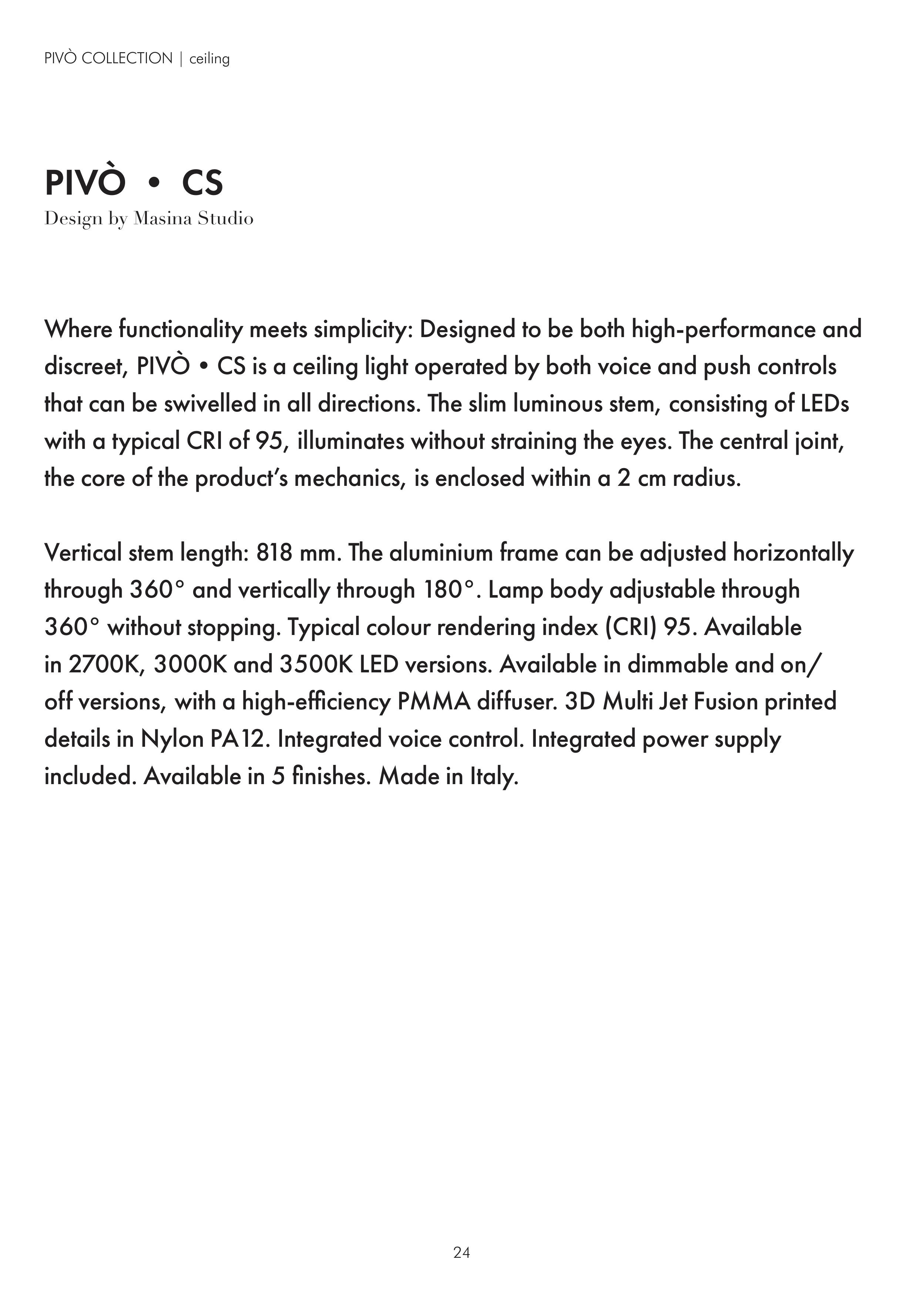 off versions, with a high-efficiency PMMA diffuser. 3D Multi Jet Fusion printed