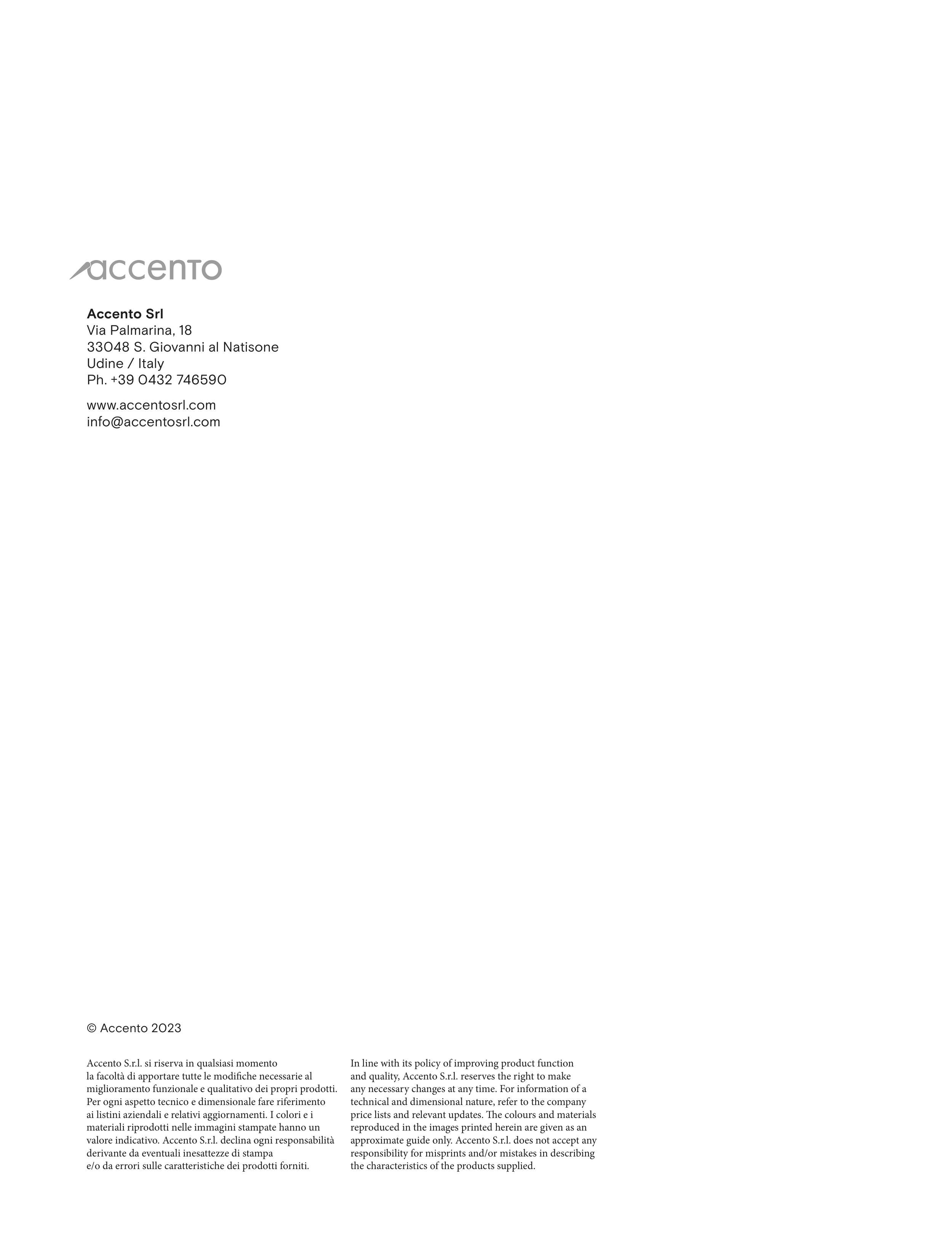 Accento S.r.l. si riserva in qualsiasi momento