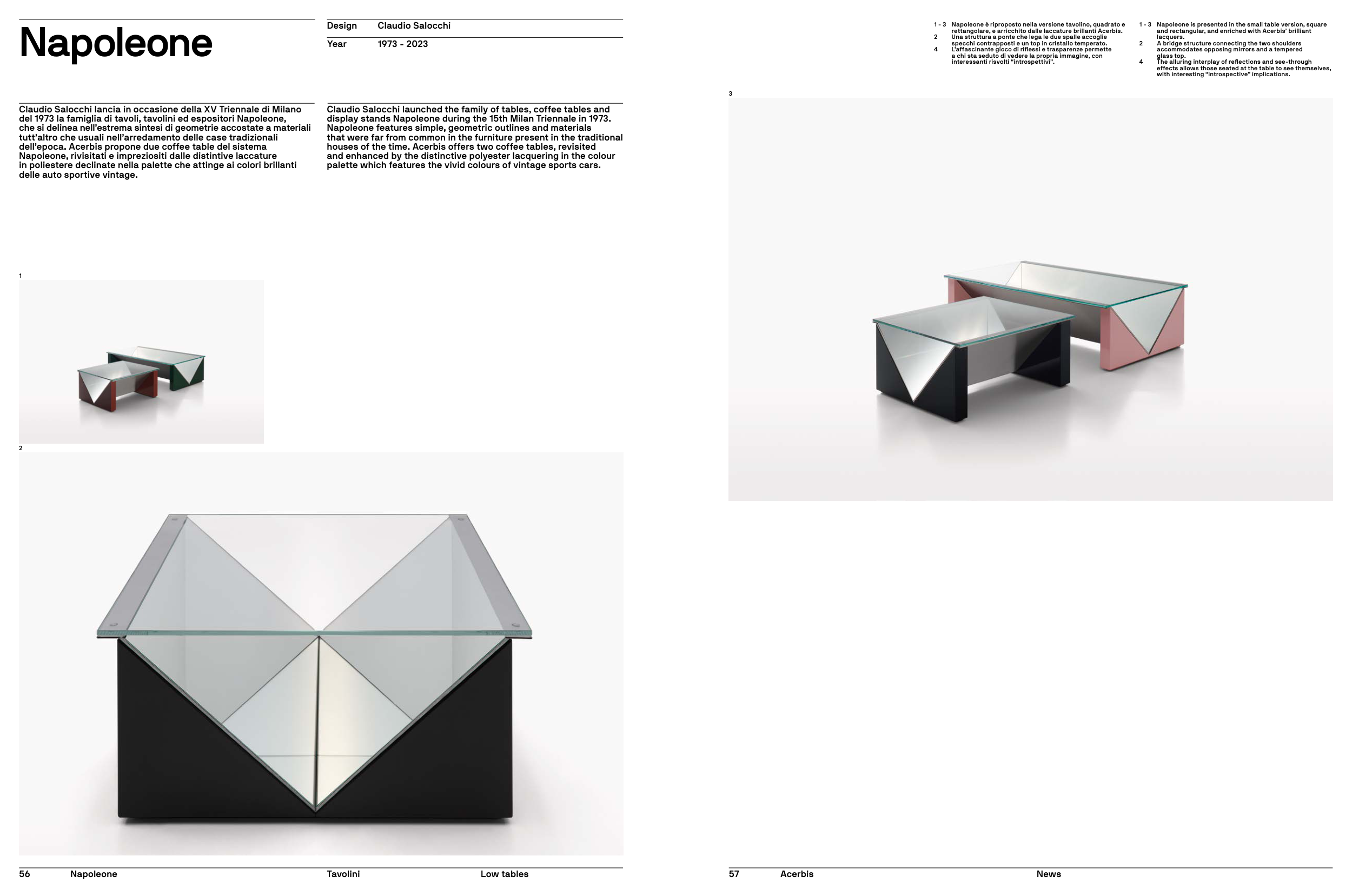 del 1973 la famiglia di tavoli, tavolini ed espositori Napoleone,