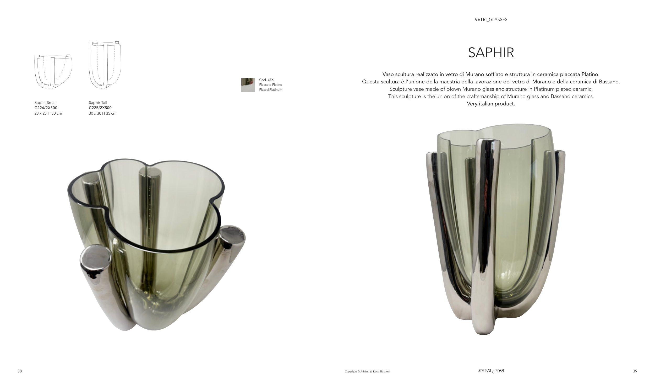 Sculpture vase made of blown Murano glass and structure in Platinum plated ceramic.