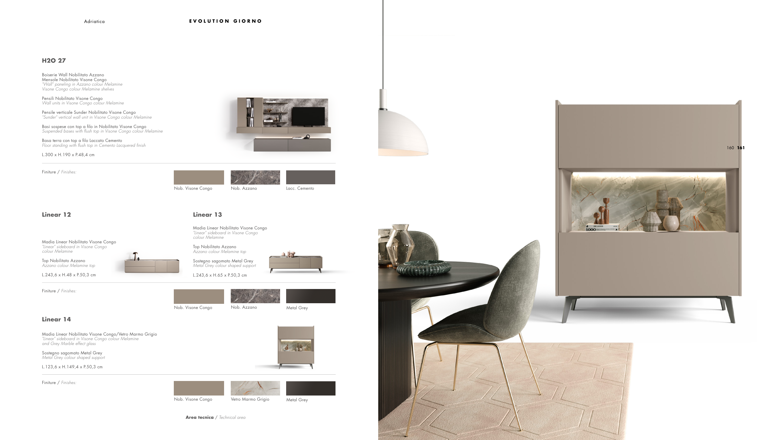 Madia Linear Nobilitato Visone Congo/Vetro Marmo Grigio