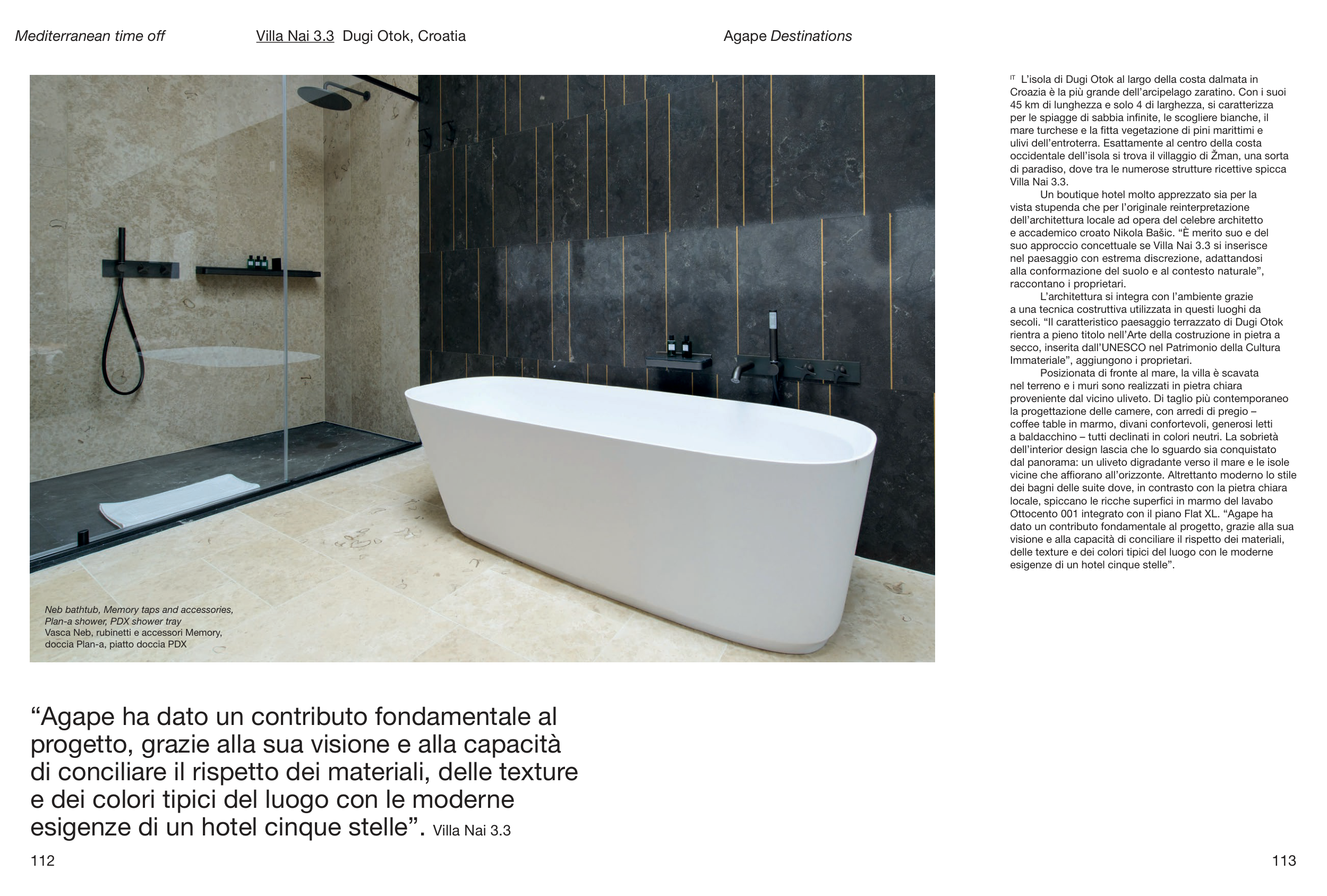 dei bagni delle suite dove, in contrasto con la pietra chiara