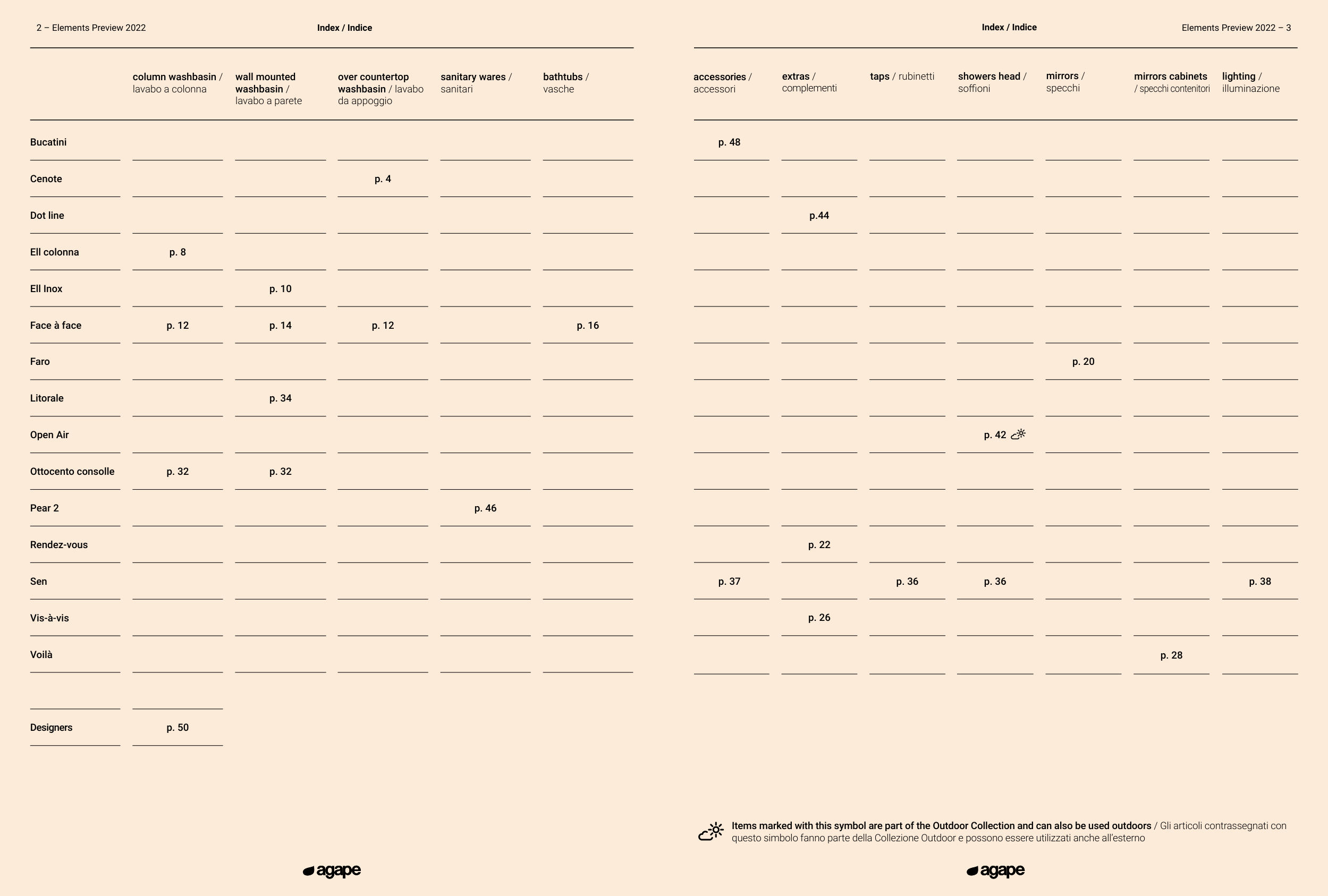 Items marked with this symbol are part of the Outdoor Collection and can also be used outdoors / Gli articoli contrassegnati con