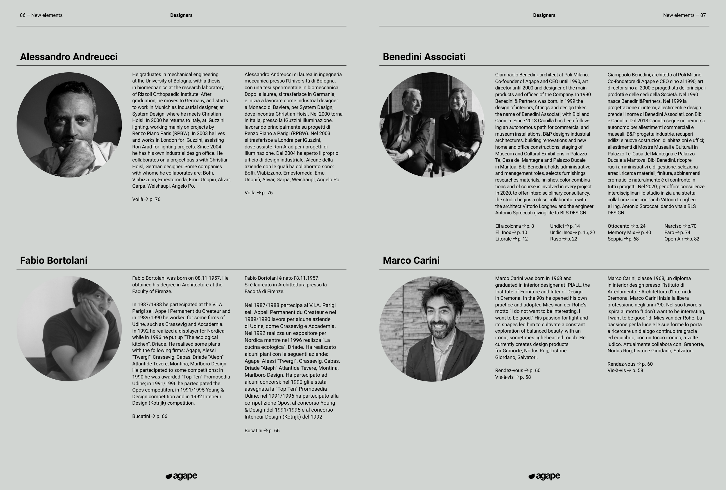with the following firms: Agape, Alessi