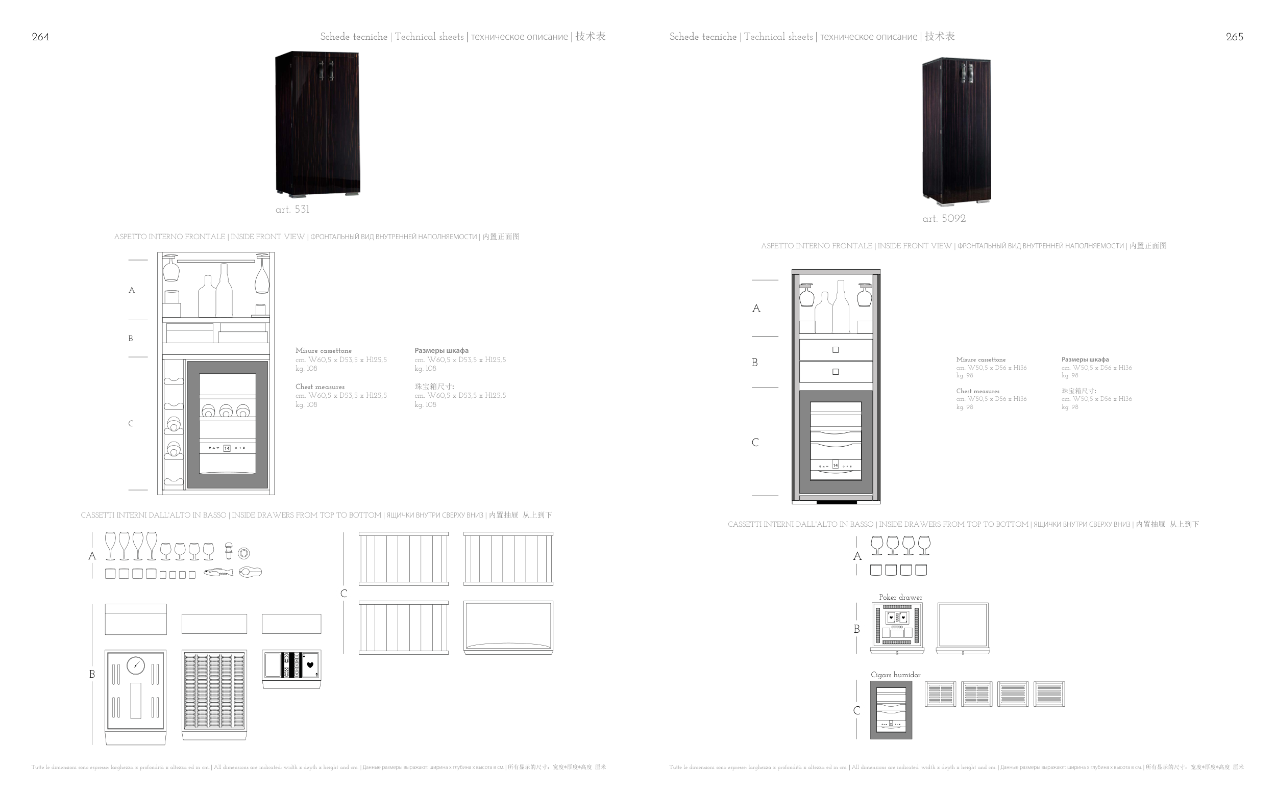 Tutte le dimensioni sono espresse: larghezza x profondità x altezza ed in cm. | All dimensions are indicated: width x depth x height and cm. | Данные размеры выражают: ширина х глубина х высота в см. | 所有显示的尺寸:宽度*厚度*高度 厘米