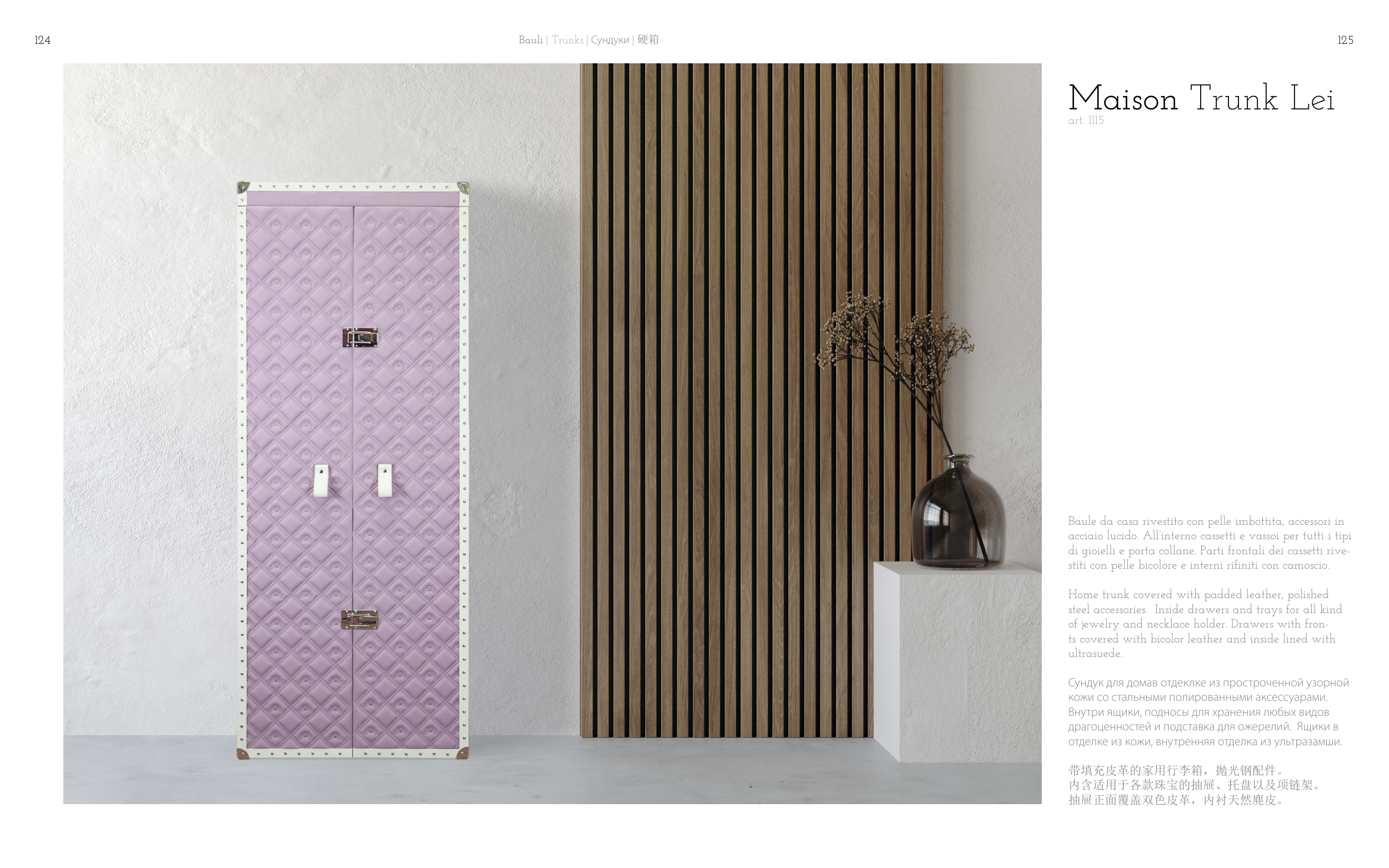 Home trunk covered with padded leather, polished