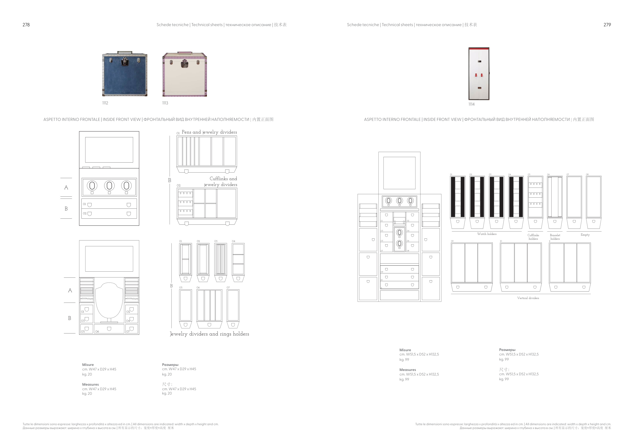 Tutte le dimensioni sono espresse: larghezza x profondità x altezza ed in cm. | All dimensions are indicated: width x depth x height and cm.