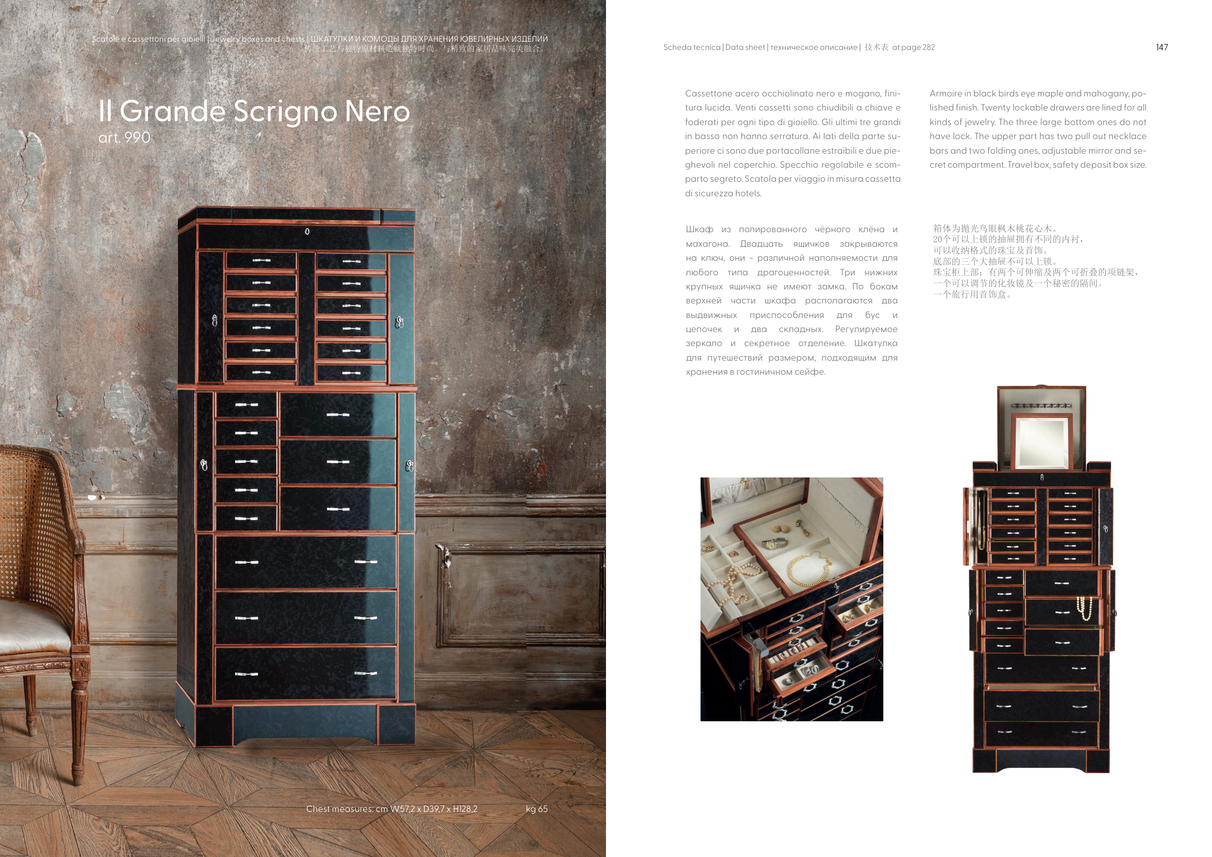 tura lucida. Venti cassetti sono chiudibili a chiave e