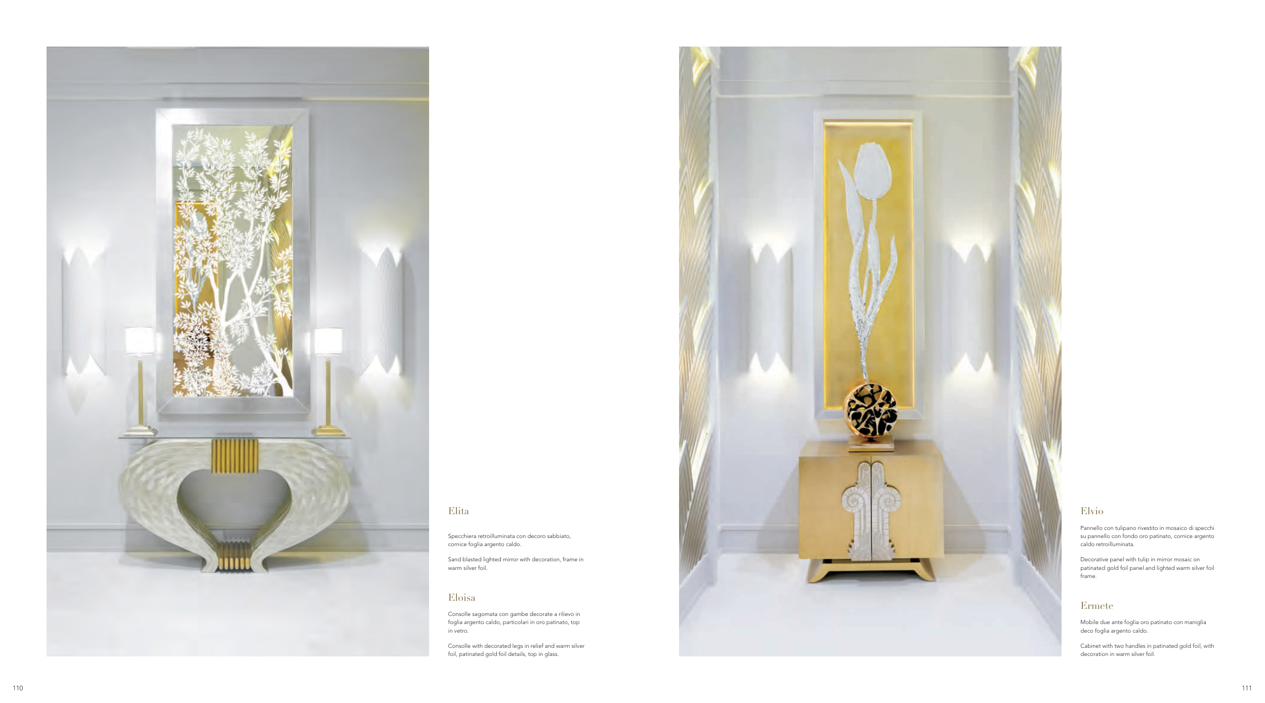 foglia argento caldo, particolari in oro patinato, top
