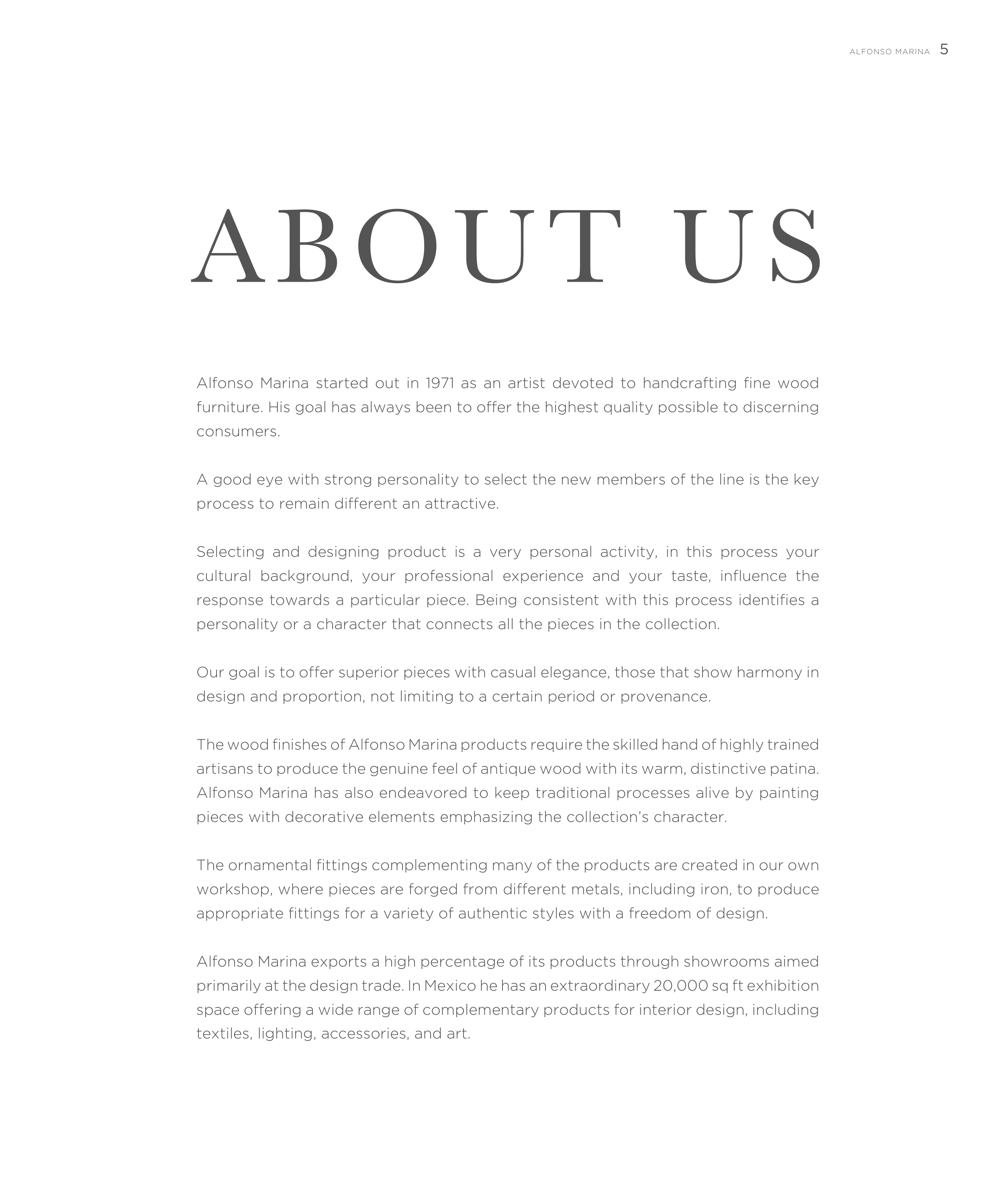 Alfonso Marina exports a high percentage of its products through showrooms aimed