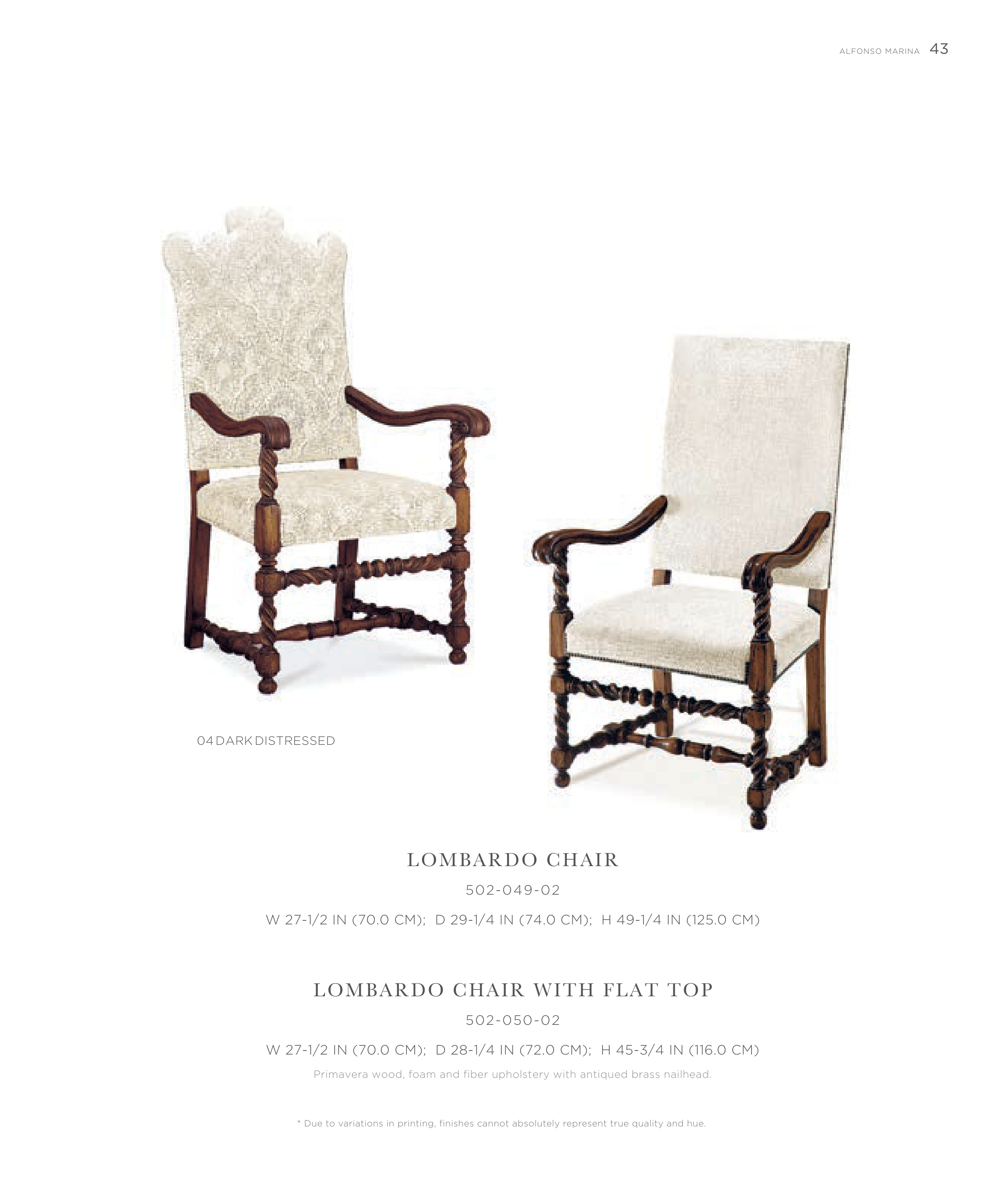 Primavera wood, foam and fiber upholstery with antiqued brass nailhead.