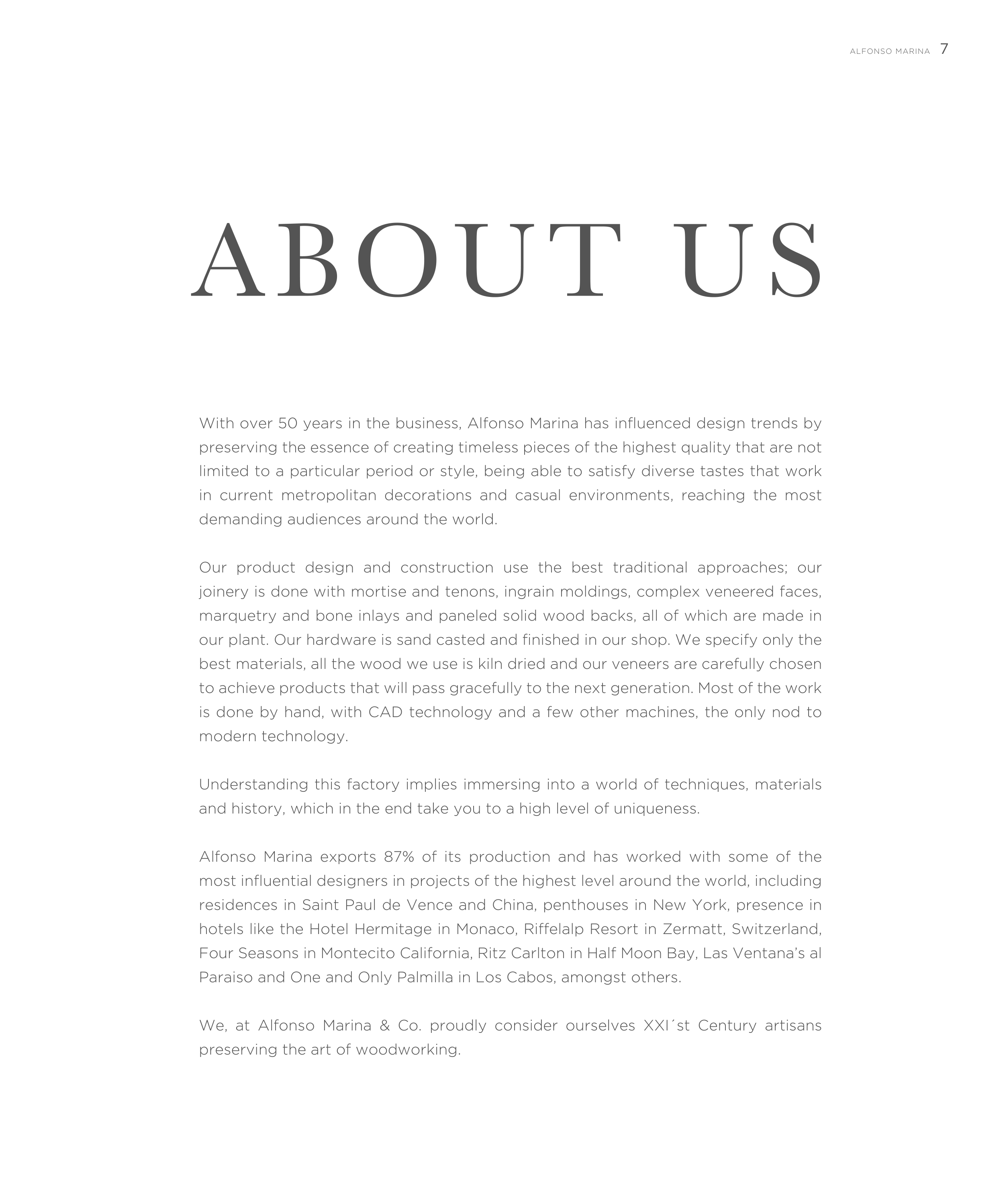 We, at Alfonso Marina & Co. proudly consider ourselves XXI´st Century artisans