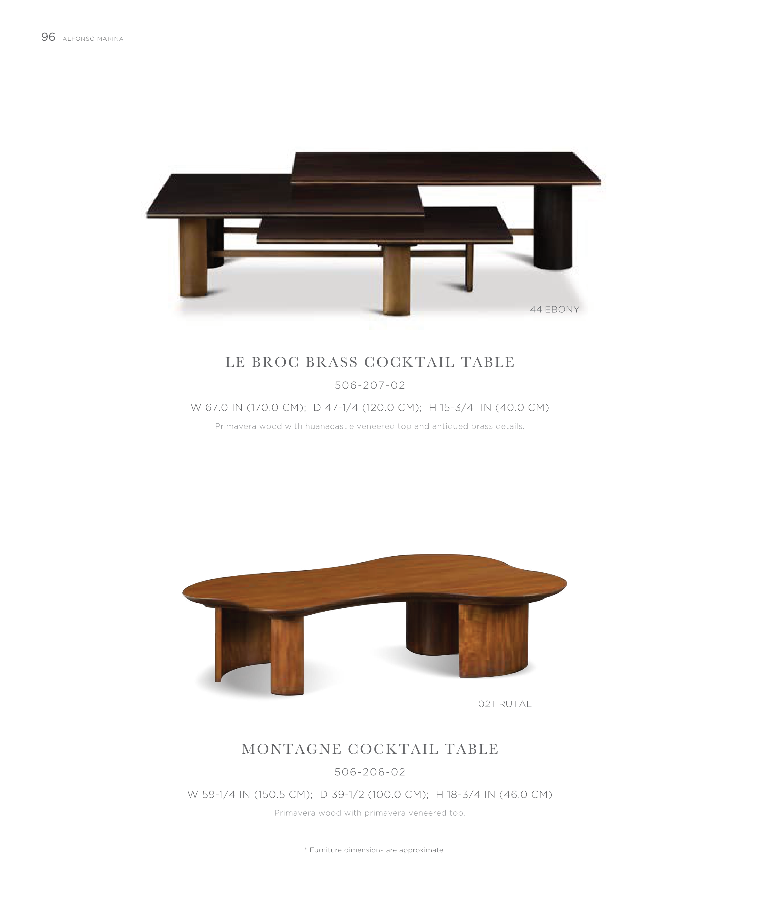 Primavera wood with huanacastle veneered top and antiqued brass details.