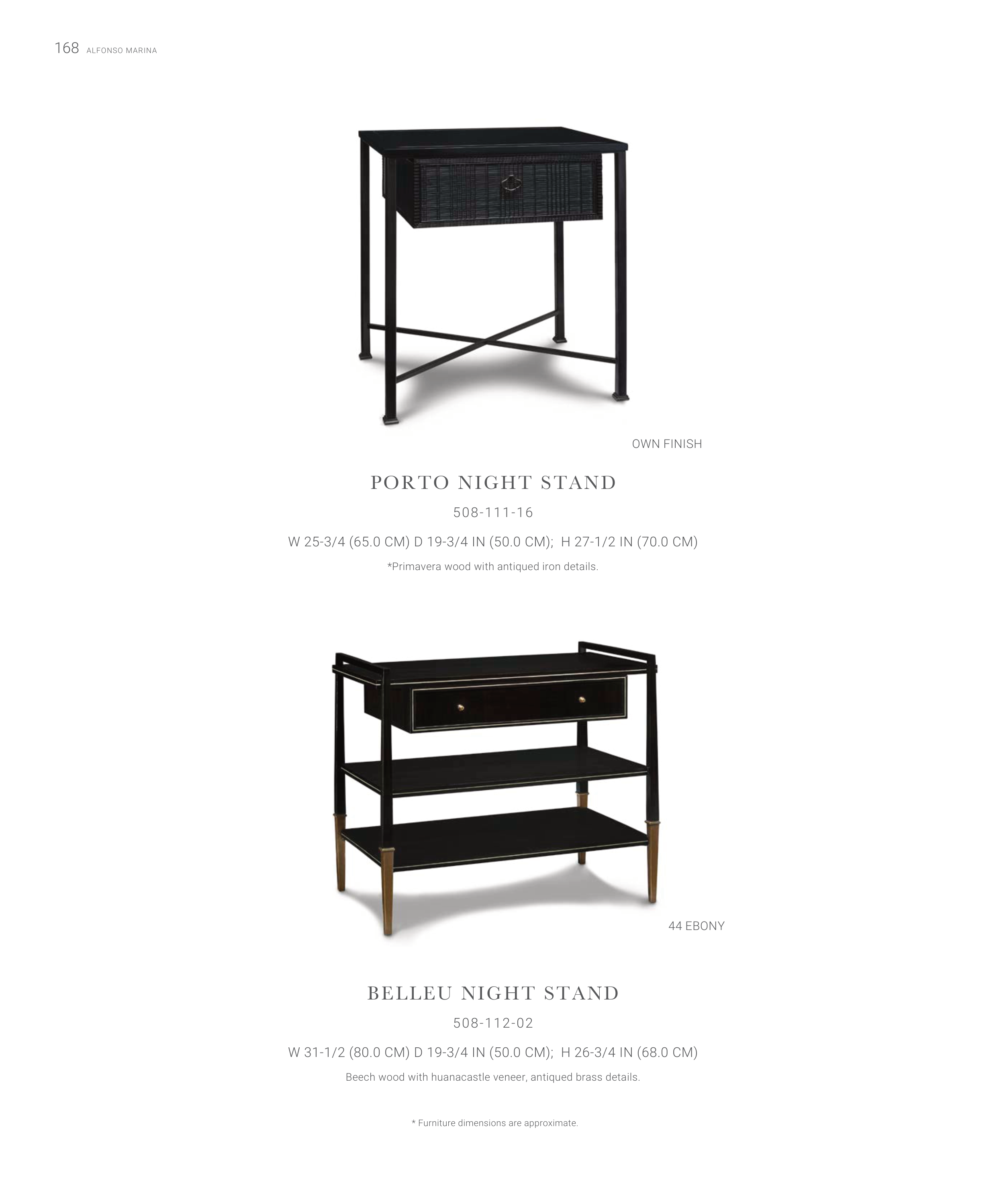 Beech wood with huanacastle veneer, antiqued brass details.