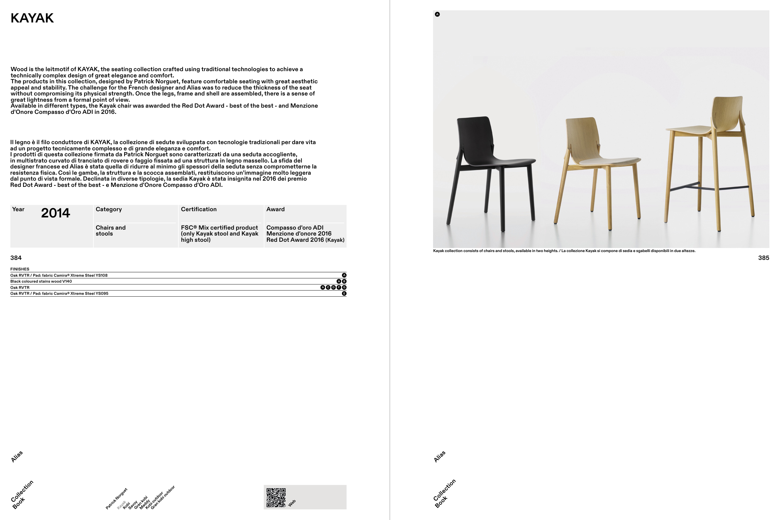 dal punto di vista formale. Declinata in diverse tipologie, la sedia Kayak è stata insignita nel 2016 dei premio