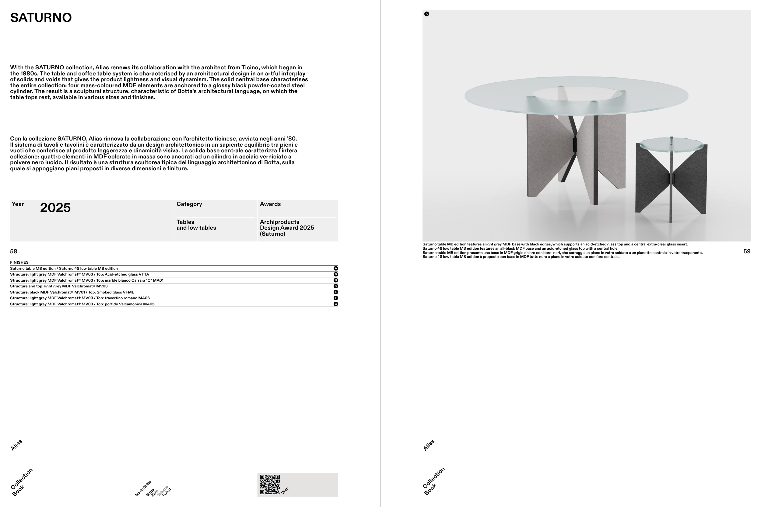 Con la collezione SATURNO, Alias rinnova la collaborazione con l'architetto ticinese, avviata negli anni ’80.