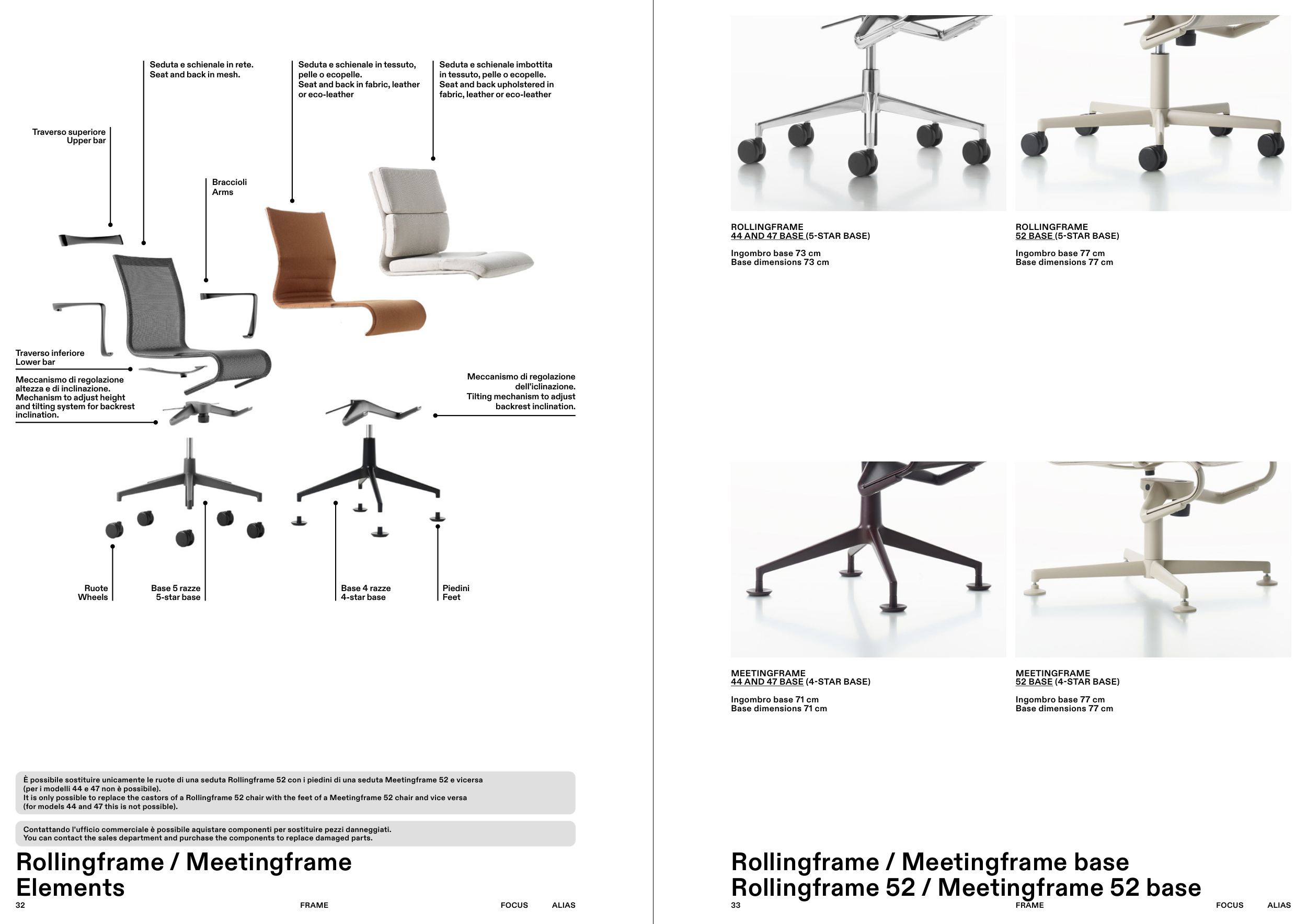 It is only possible to replace the castors of a Rollingframe 52 chair with the feet of a Meetingframe 52 chair and vice versa