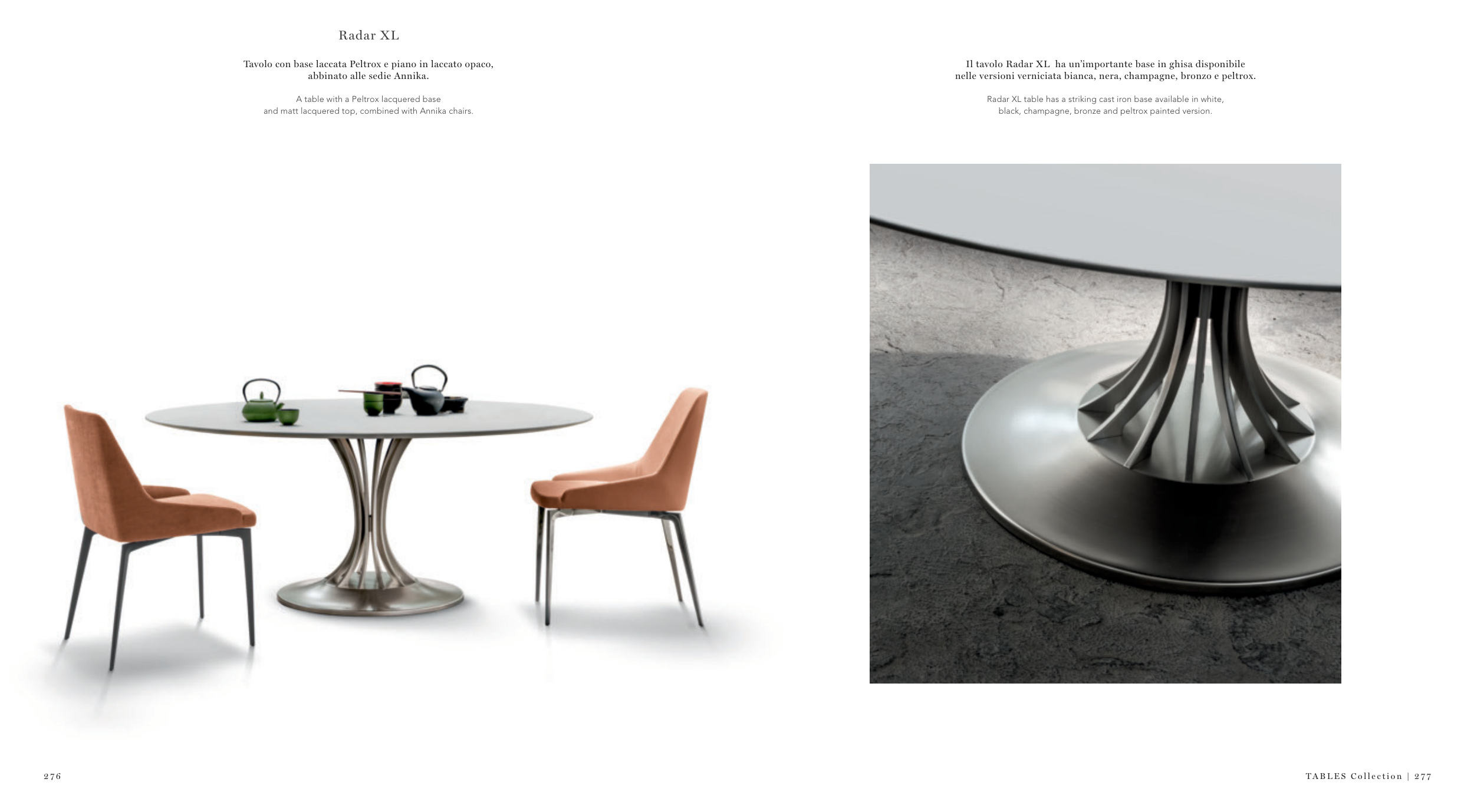 Radar XL table has a striking cast iron base available in white,