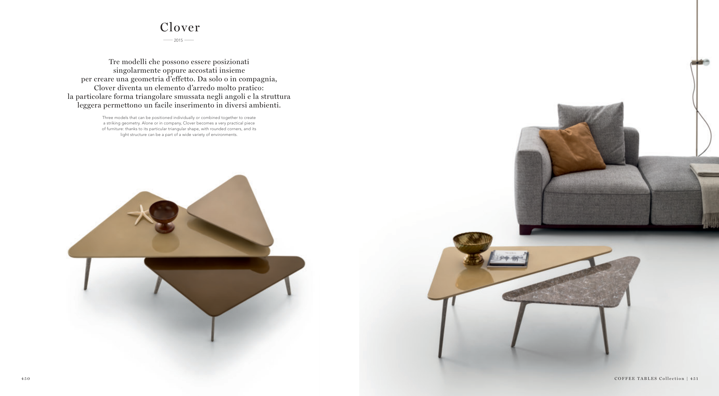 a striking geometry. Alone or in company, Clover becomes a very practical piece