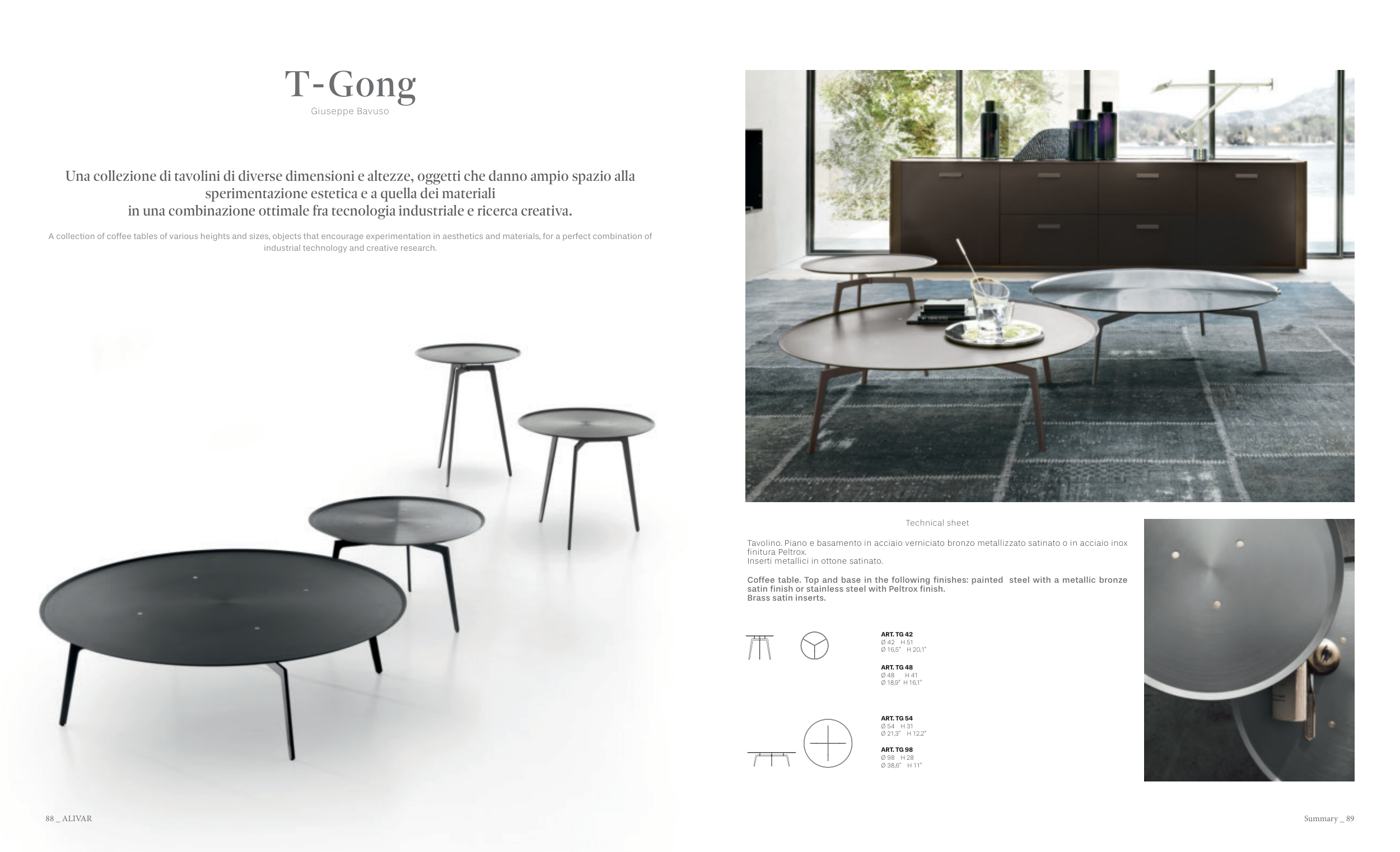 Coffee table. Top and base in the following finishes: painted steel with a metallic bronze