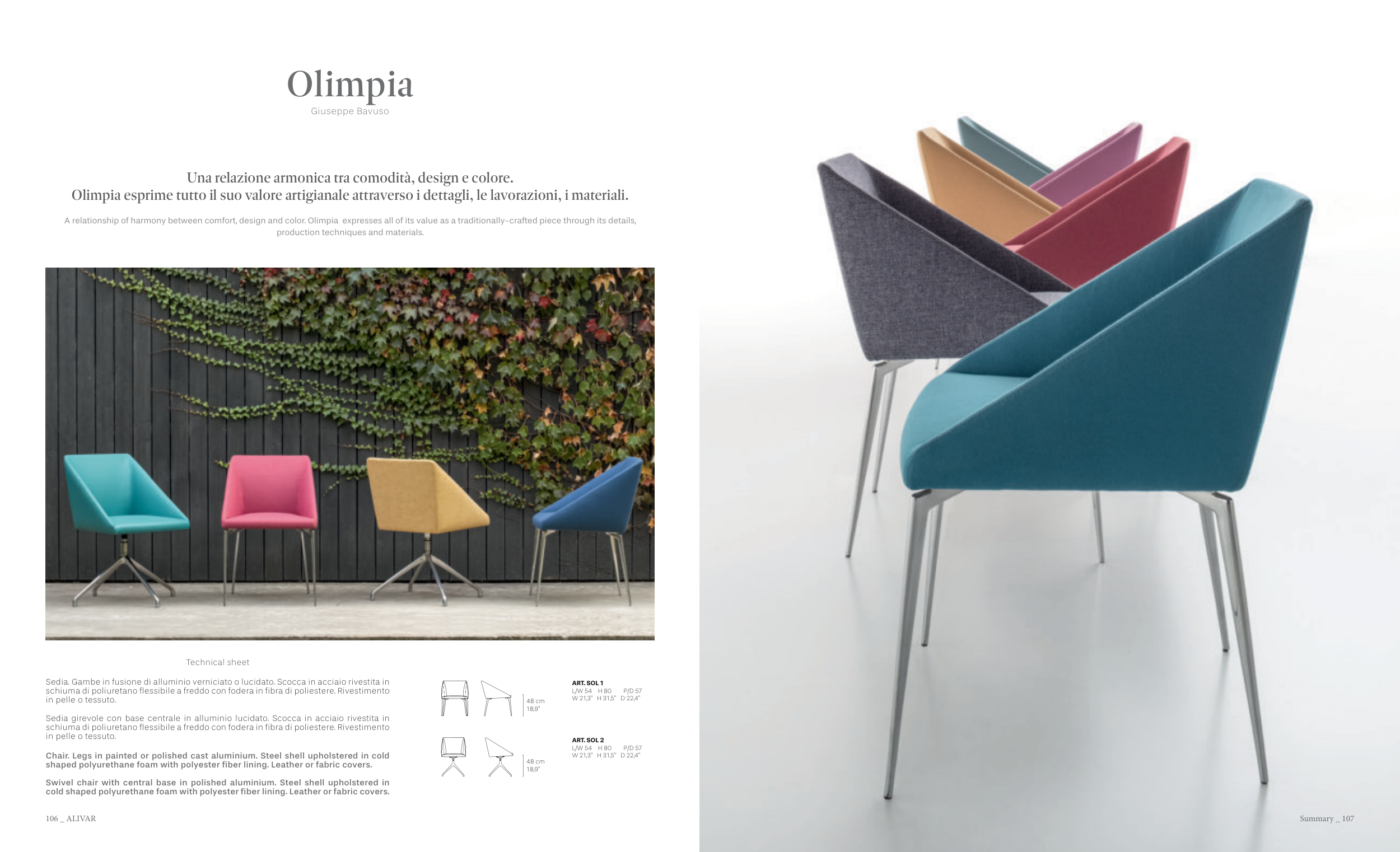 A relationship of harmony between comfort, design and color. Olimpia expresses all of its value as a traditionally-crafted piece through its details,