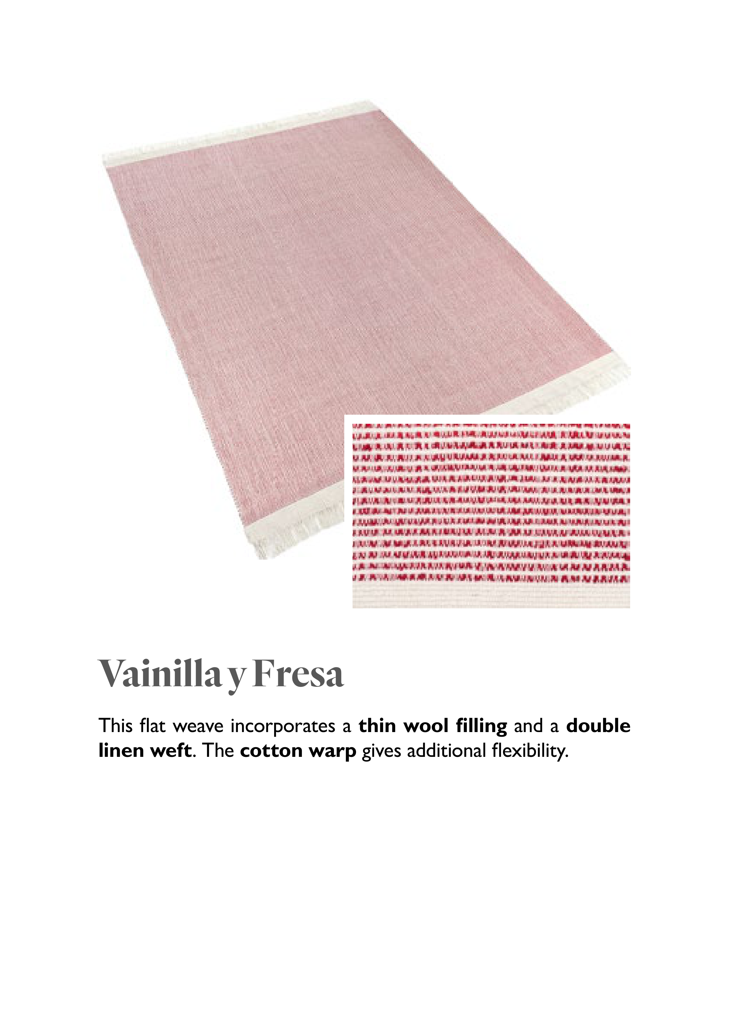 This fl at weave incorporates a thin wool fi lling and a double