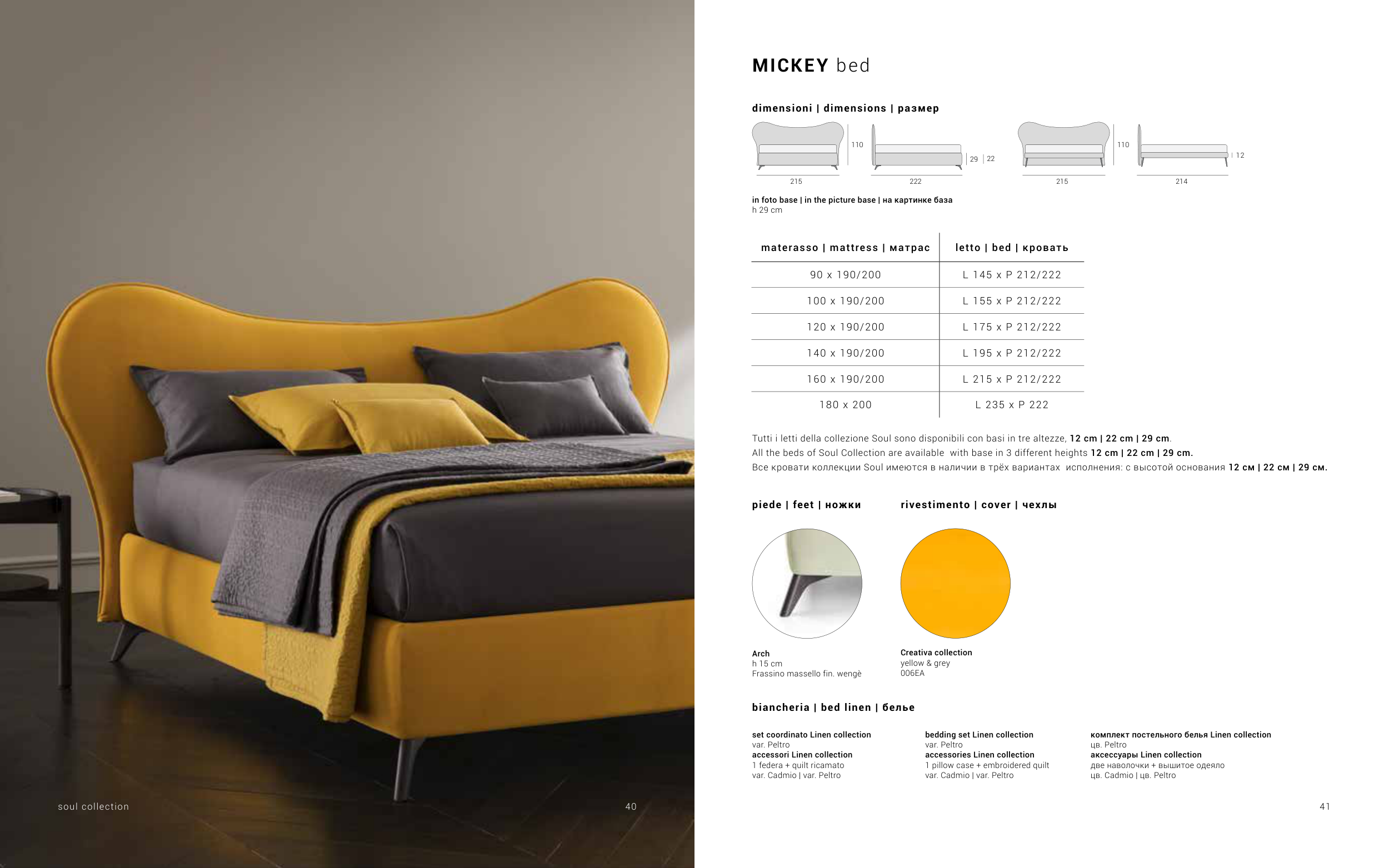 All the beds of Soul Collection are available with base in 3 different heights 12 cm | 22 cm | 29 cm.