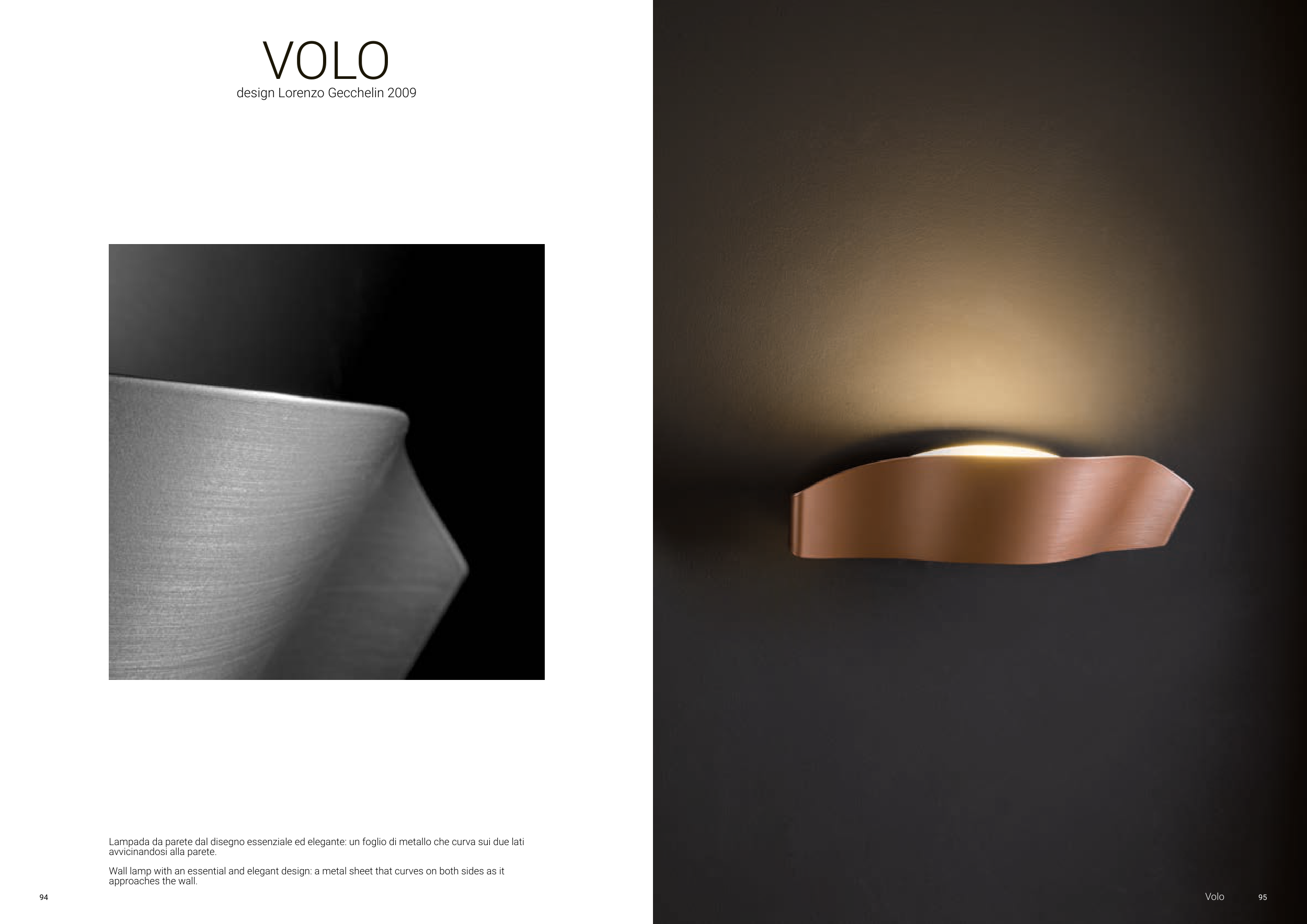 Wall lamp with an essential and elegant design: a metal sheet that curves on both sides as it
