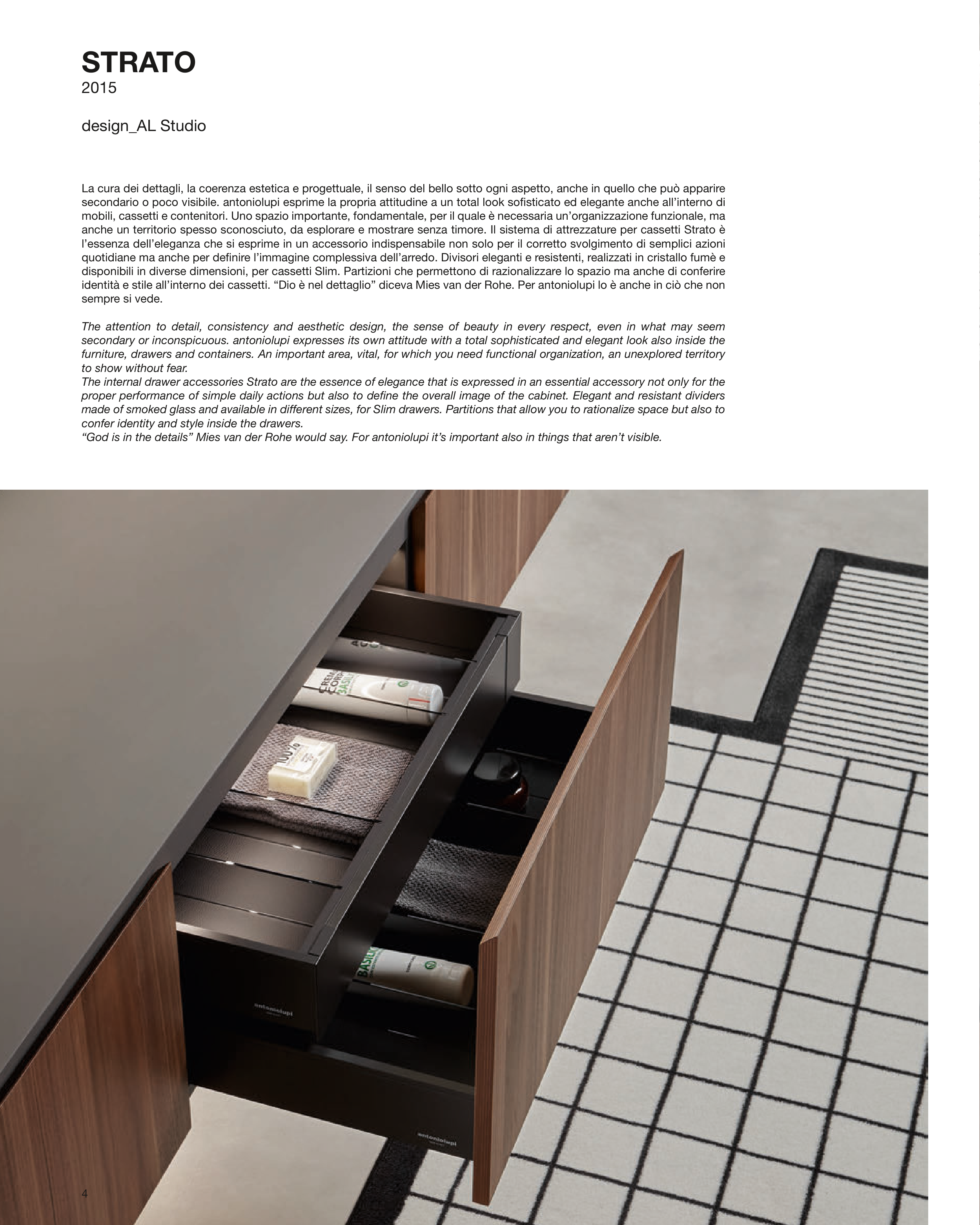 identità e stile all’interno dei cassetti. “Dio è nel dettaglio” diceva Mies van der Rohe. Per antoniolupi lo è anche in ciò che non