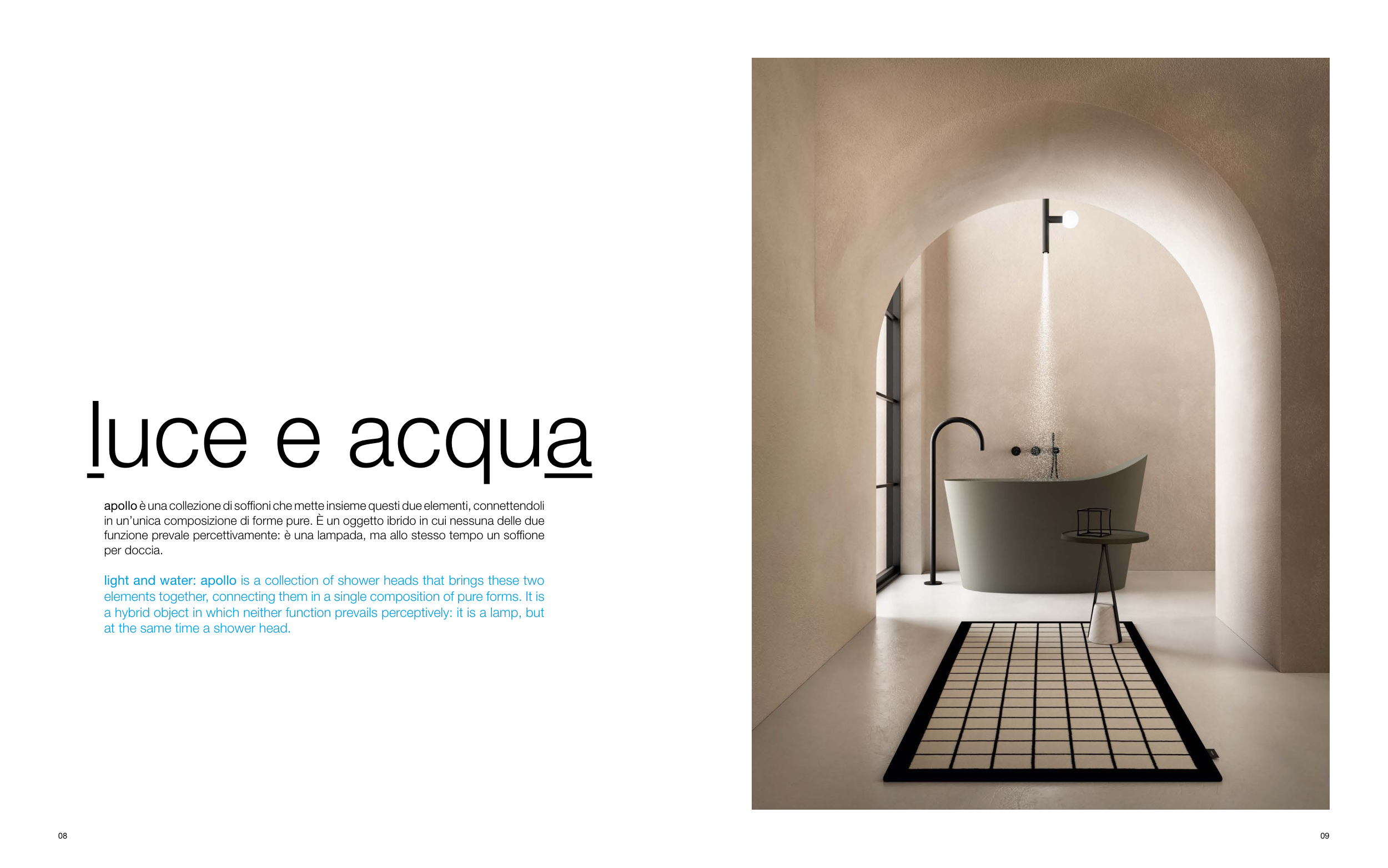 apollo è una collezione di soffioni che mette insieme questi due elementi, connettendoli