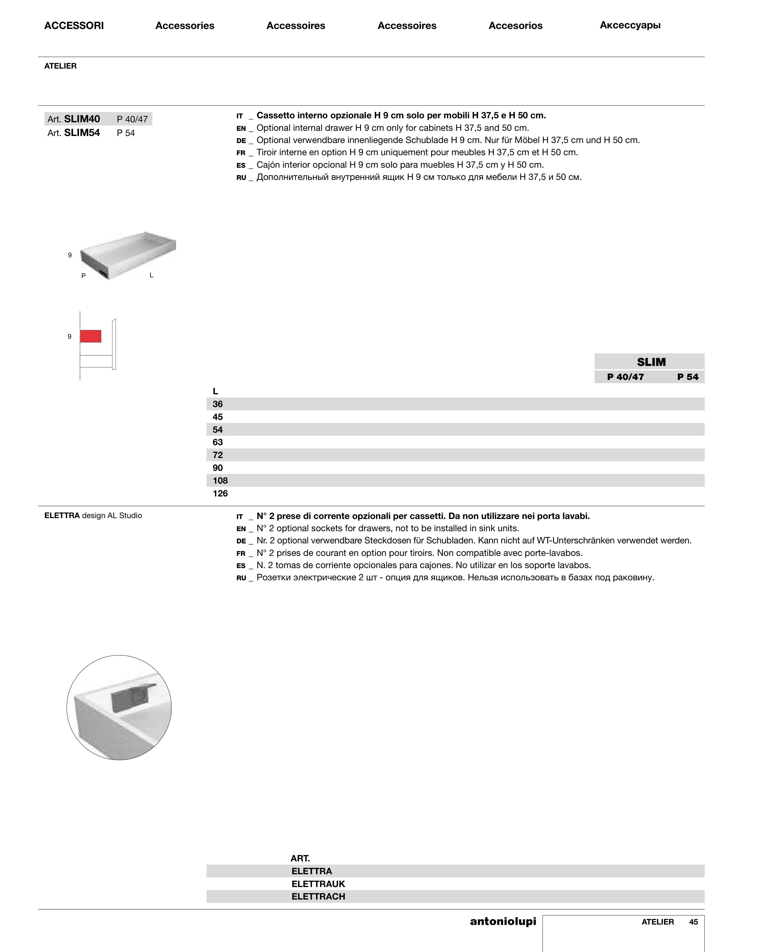 IT _ Cassetto interno opzionale H 9 cm solo per mobili H 37,5 e H 50 cm.