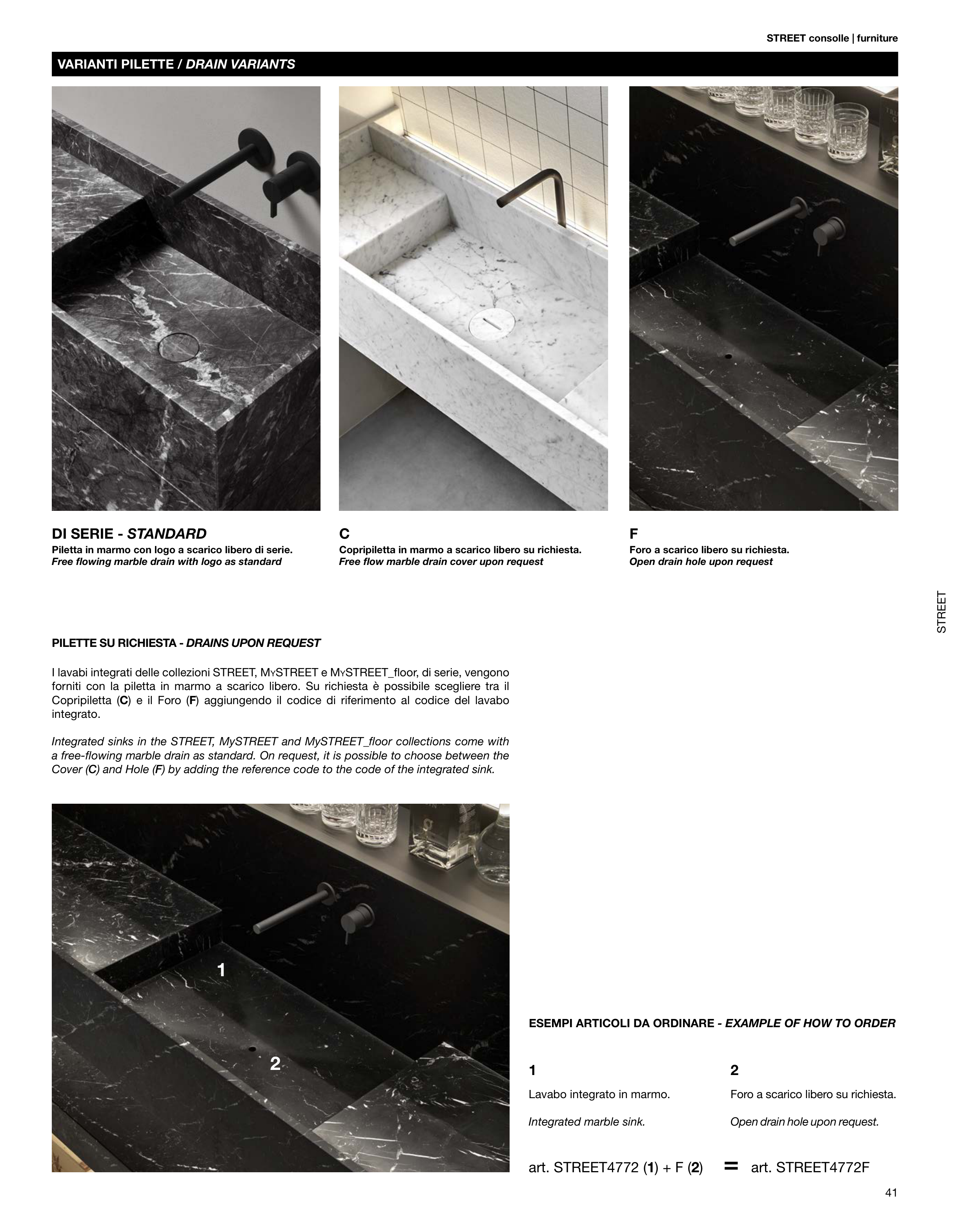 Integrated sinks in the STREET, MySTREET and MySTREET_floor collections come with