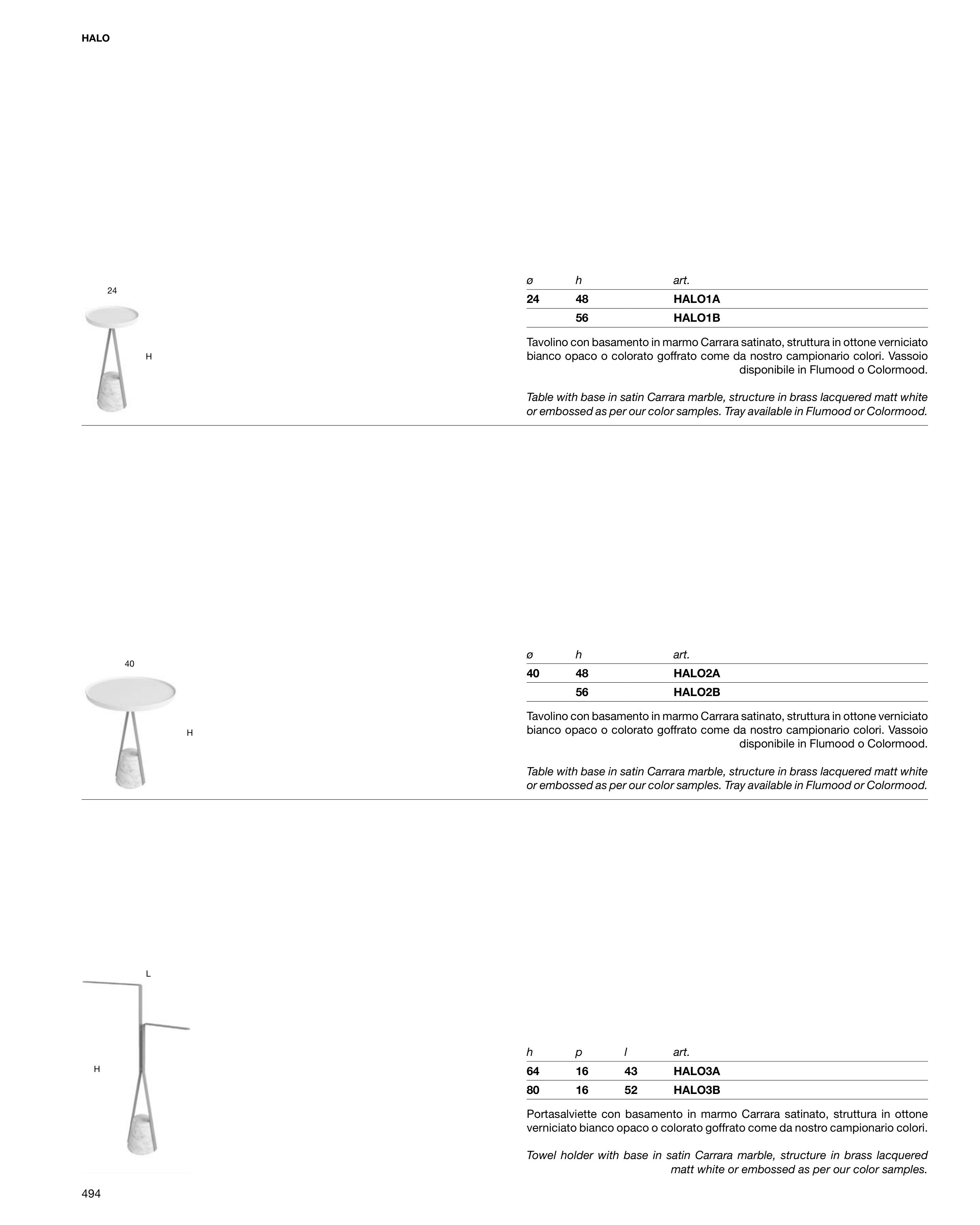 Portasalviette con basamento in marmo Carrara satinato, struttura in ottone