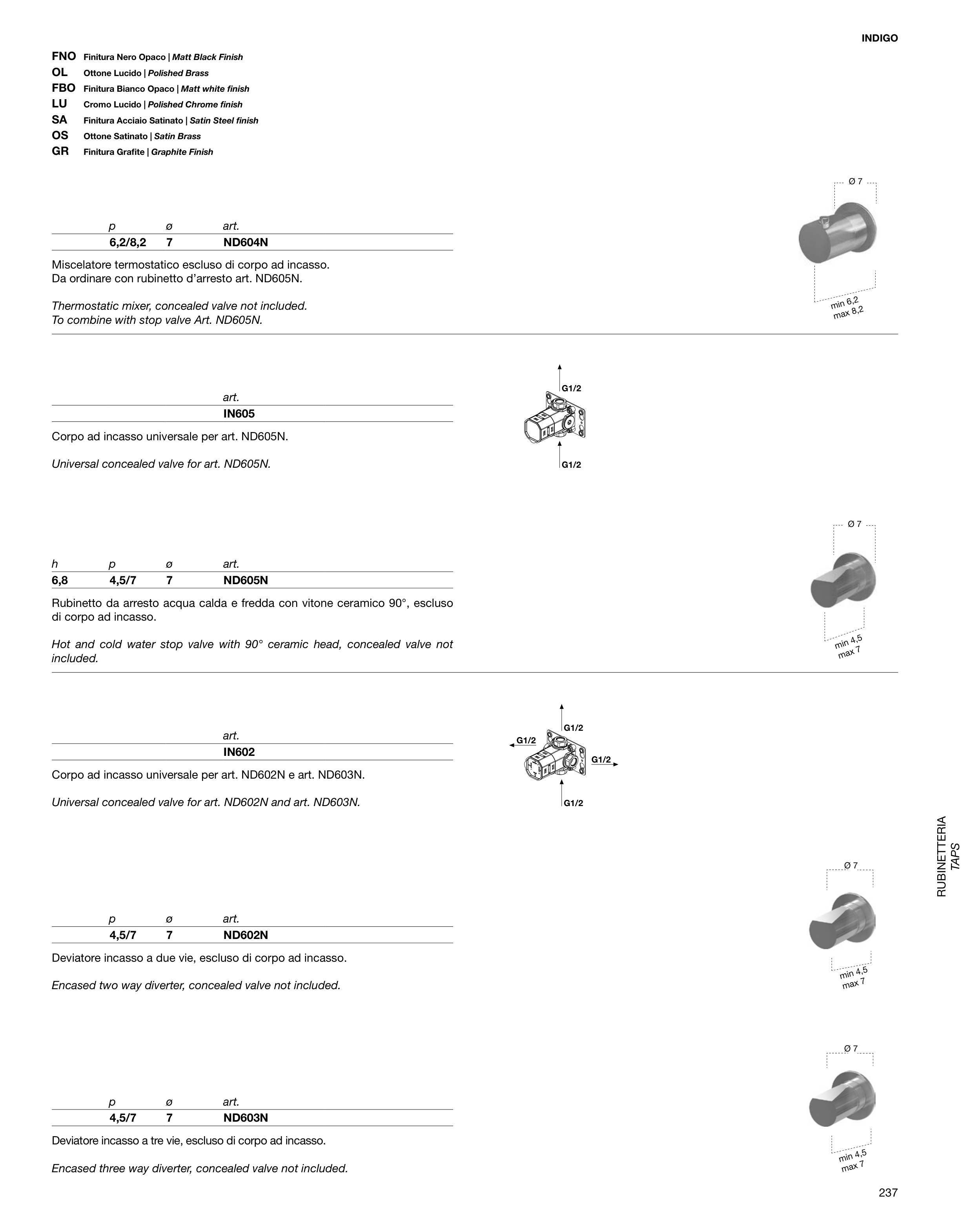 Universal concealed valve for art. ND602N and art. ND603N.