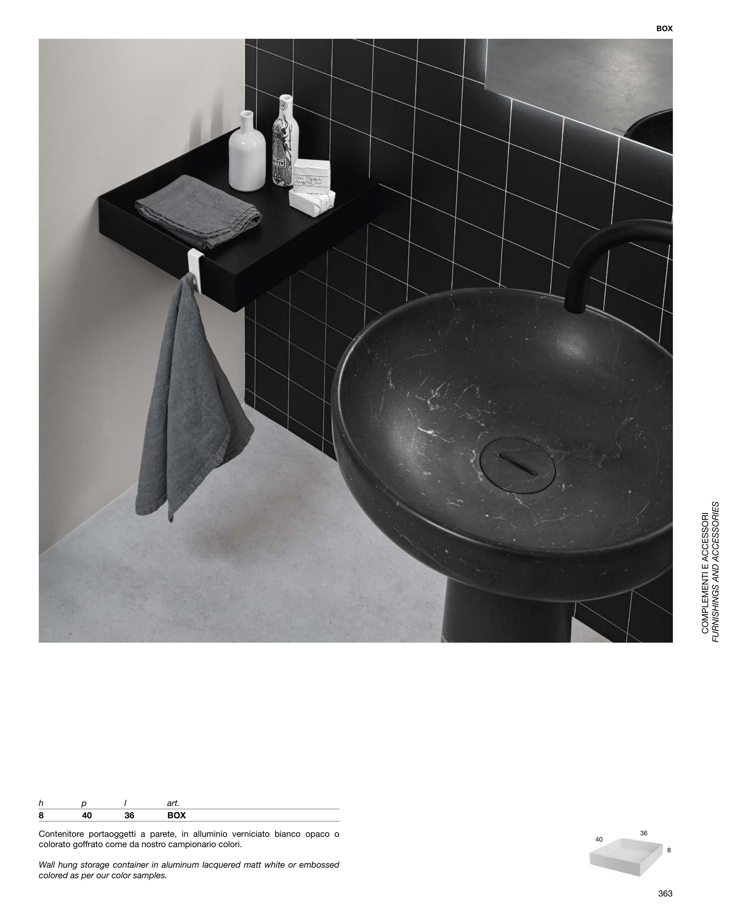 Wall hung storage container in aluminum lacquered matt white or embossed