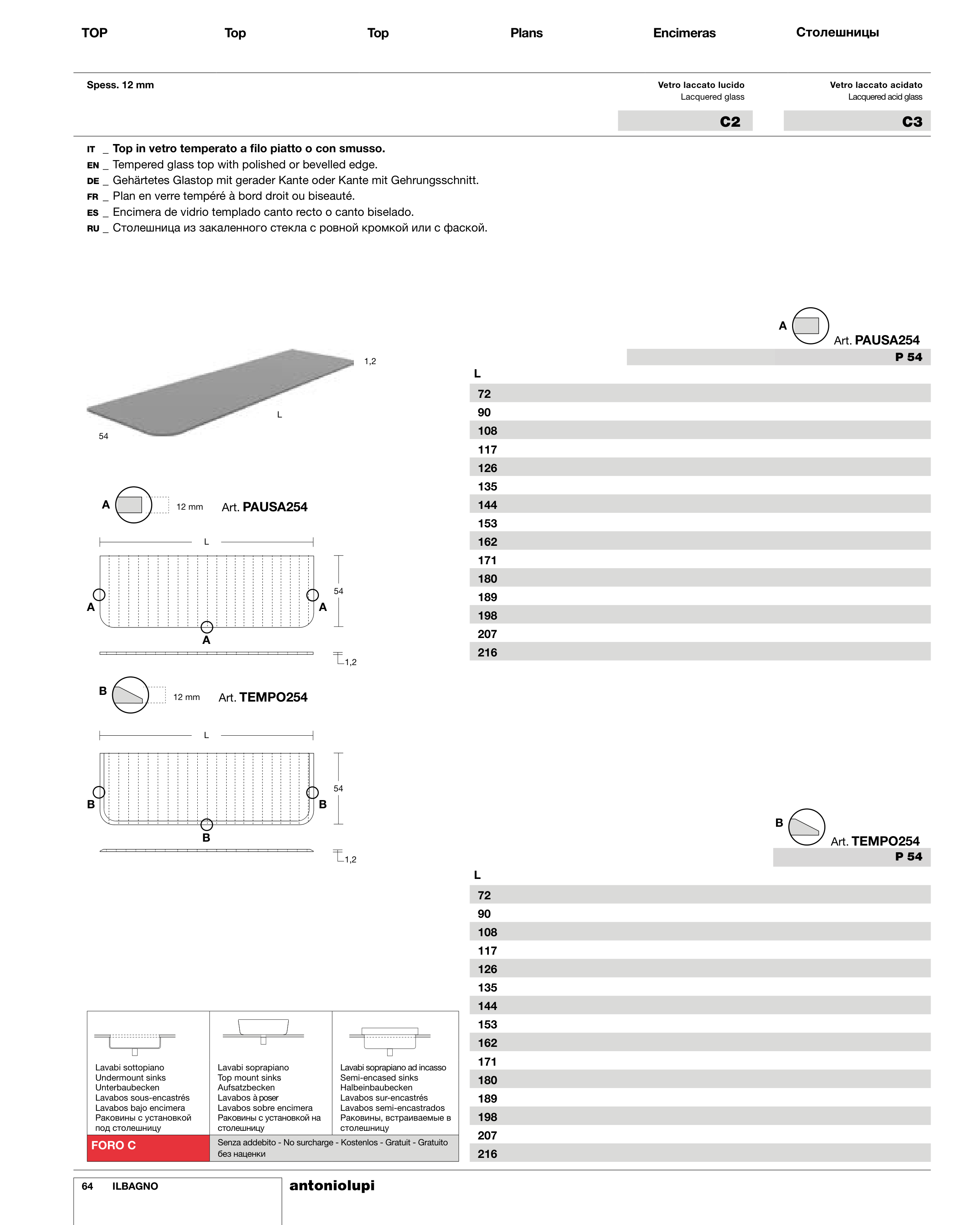 IT _ Top in vetro temperato a filo piatto o con smusso.
