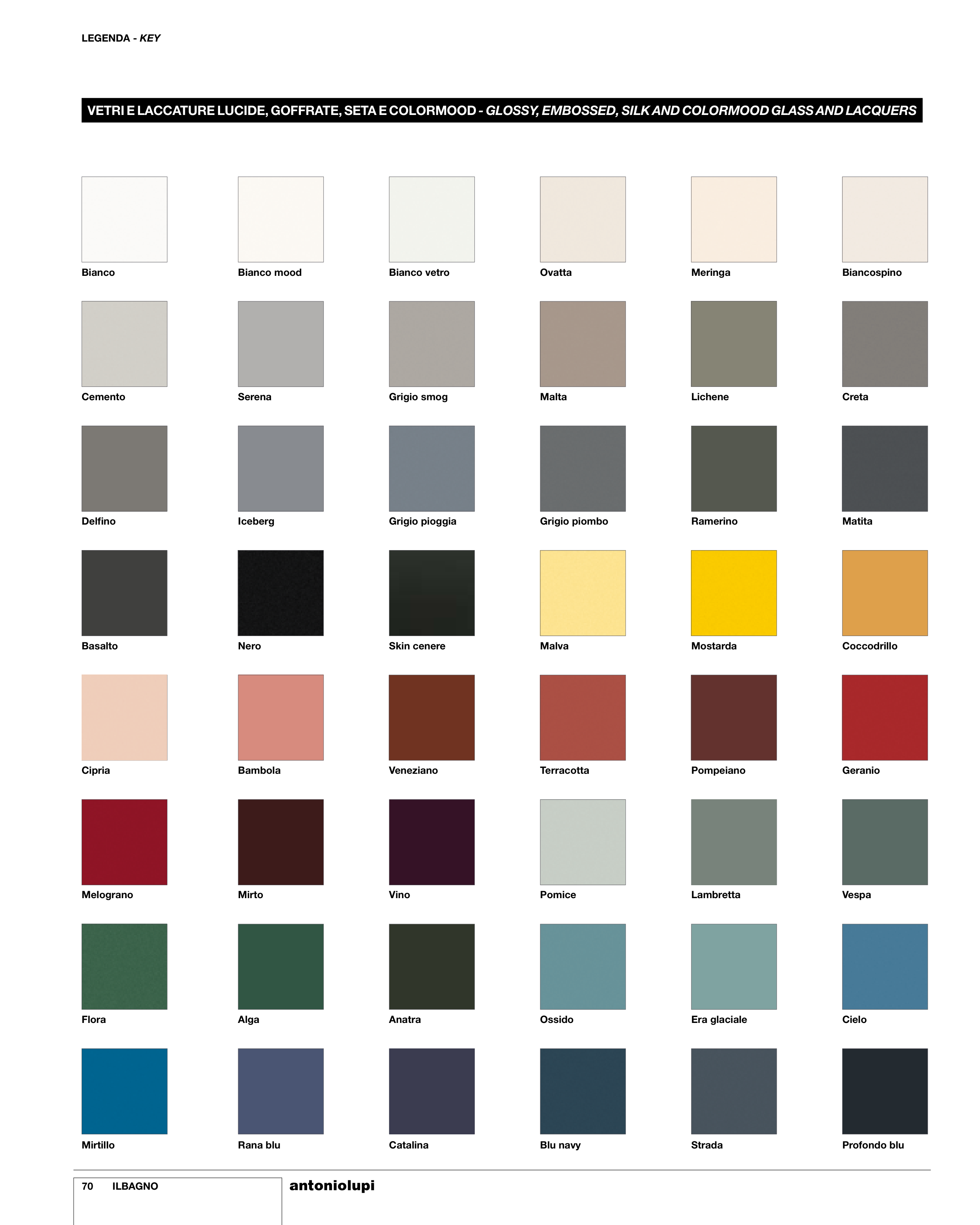 VETRI E LACCATURE LUCIDE, GOFFRATE, SETA E COLORMOOD - GLOSSY, EMBOSSED, SILK AND COLORMOOD GLASS AND LACQUERS