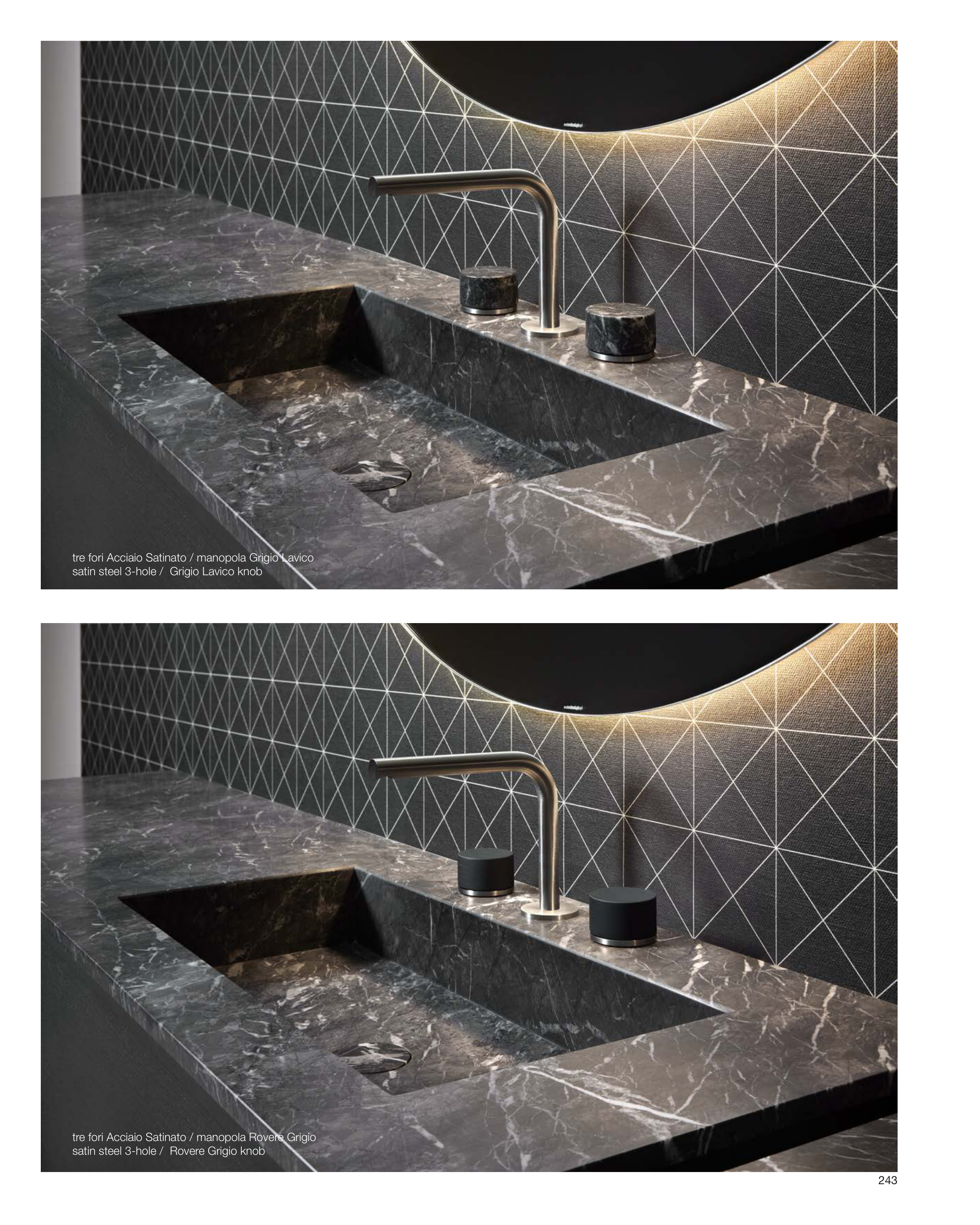 satin steel 3-hole / Grigio Lavico knob