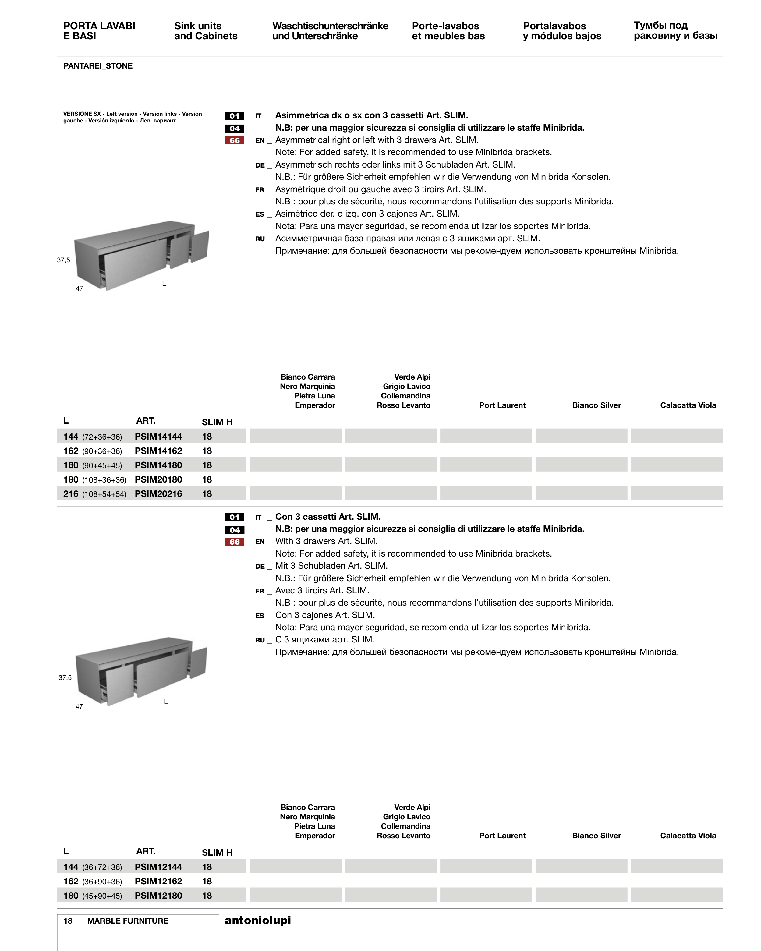 IT _ Asimmetrica dx o sx con 3 cassetti Art. SLIM.