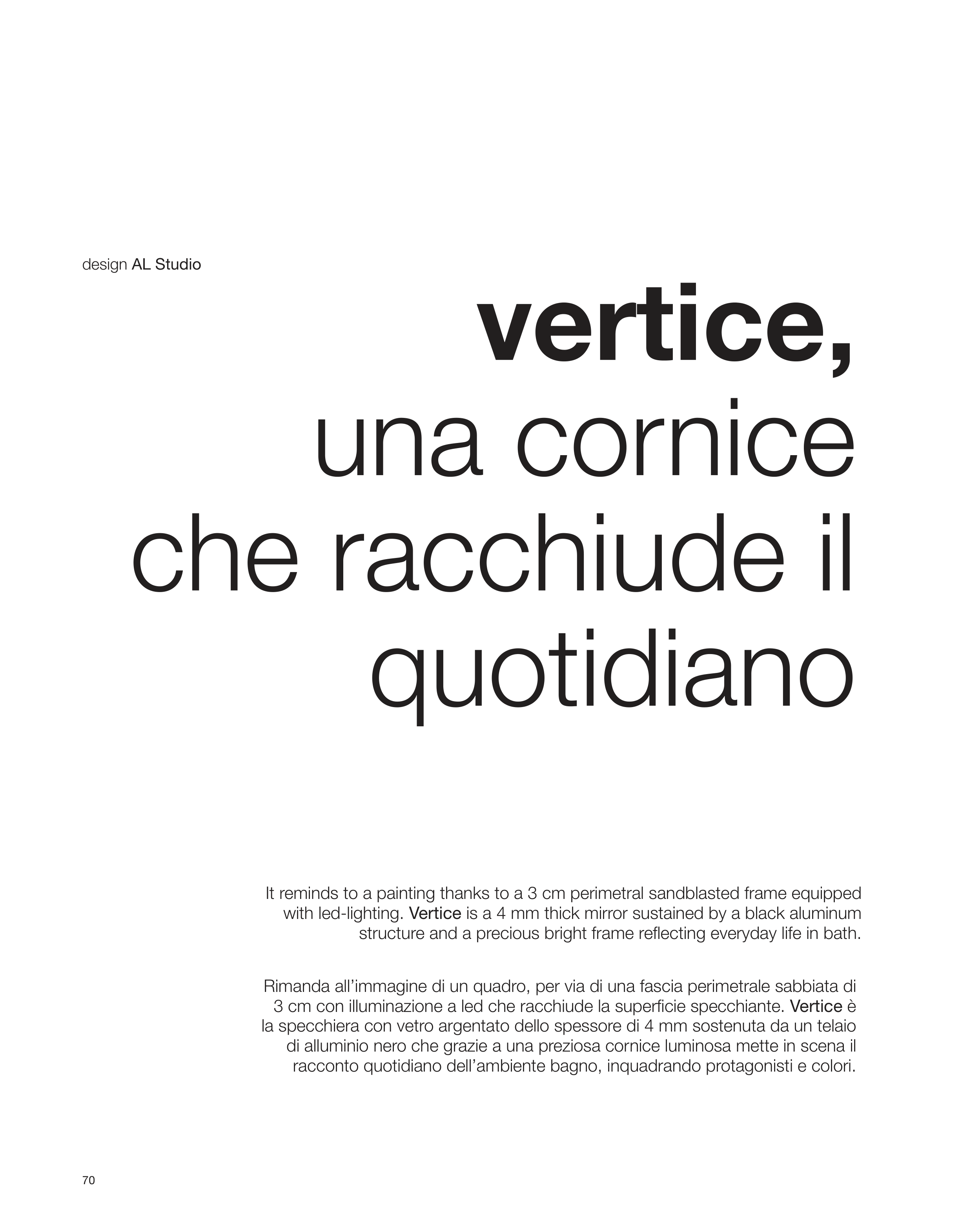with led-lighting. Vertice is a 4 mm thick mirror sustained by a black aluminum