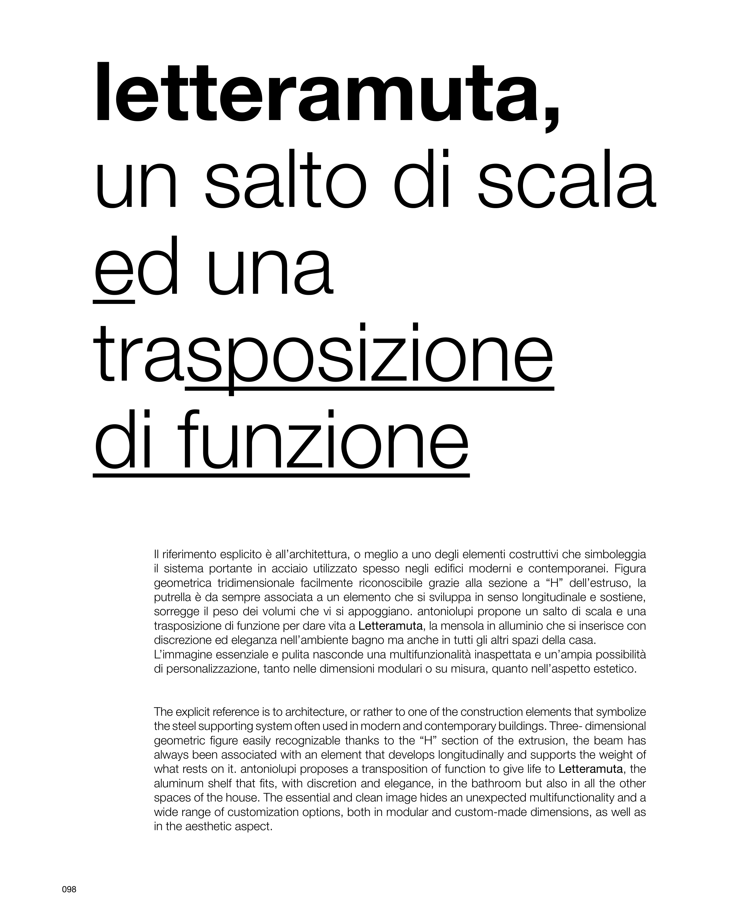 what rests on it. antoniolupi proposes a transposition of function to give life to Letteramuta, the
