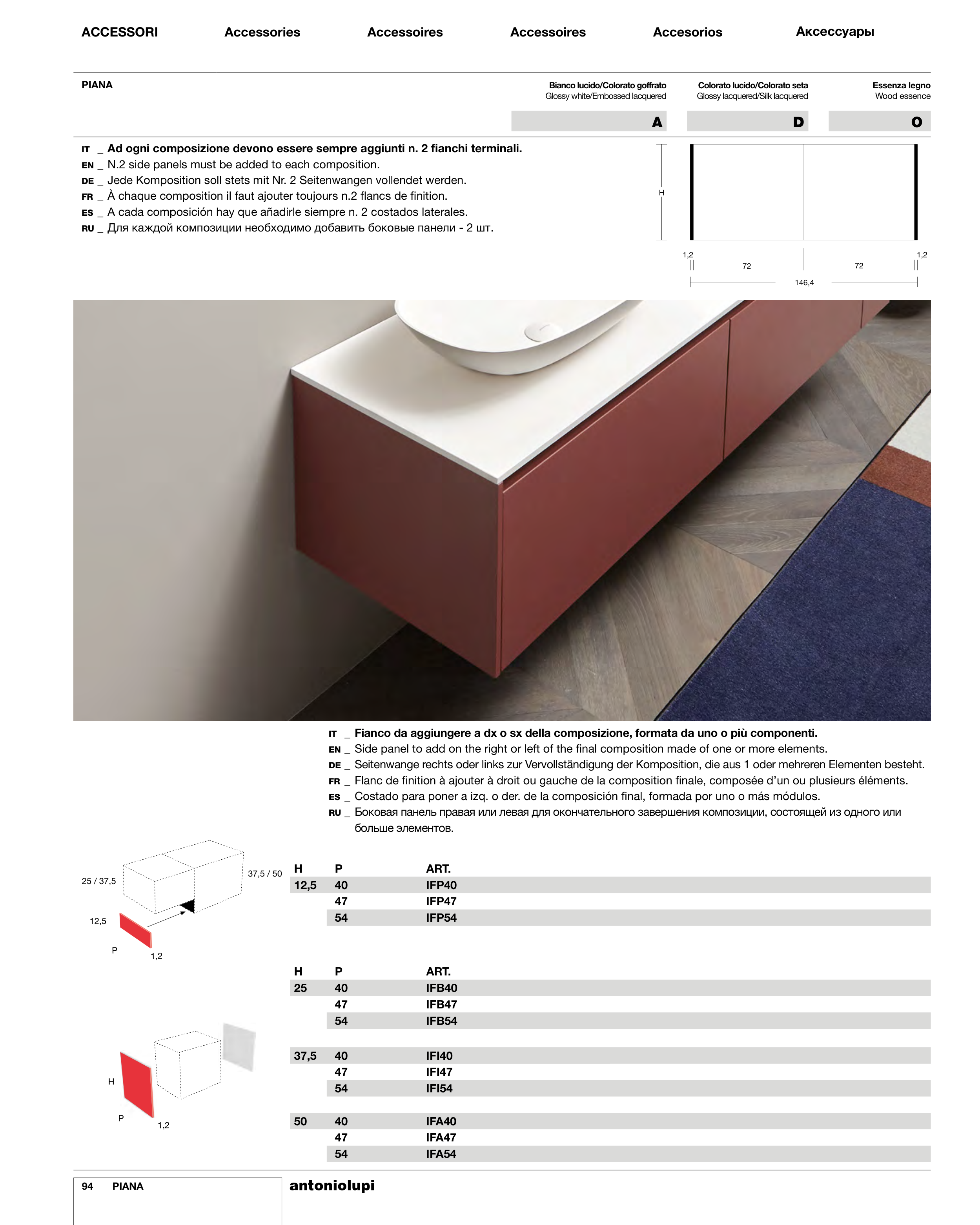 IT _ Fianco da aggiungere a dx o sx della composizione, formata da uno o più componenti.