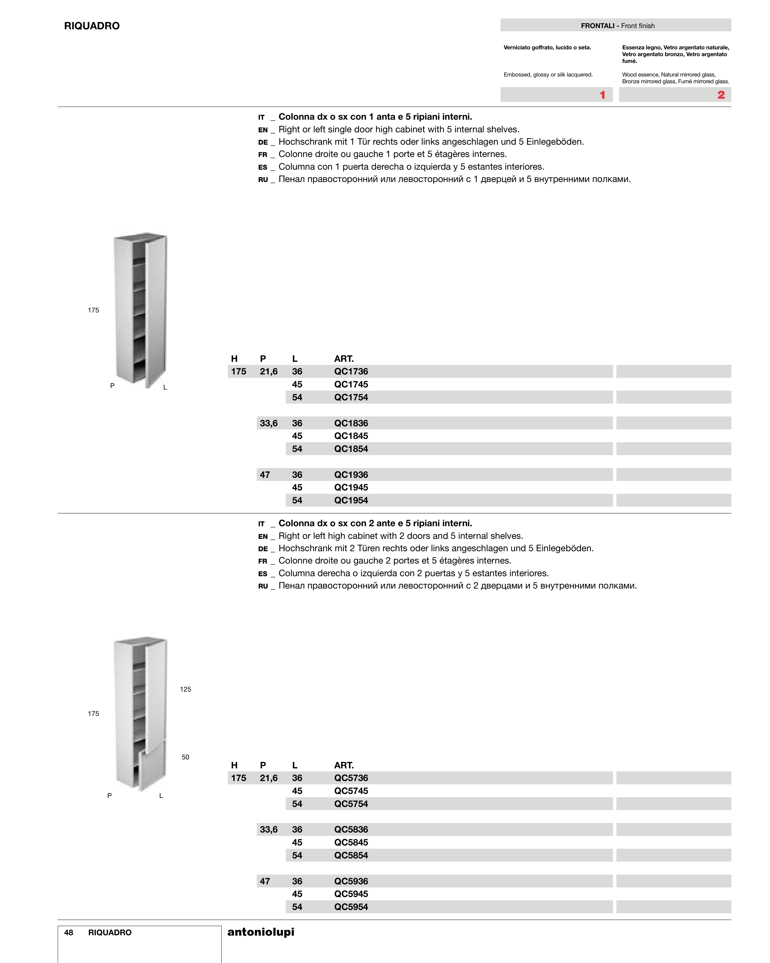 IT _ Colonna dx o sx con 2 ante e 5 ripiani interni.