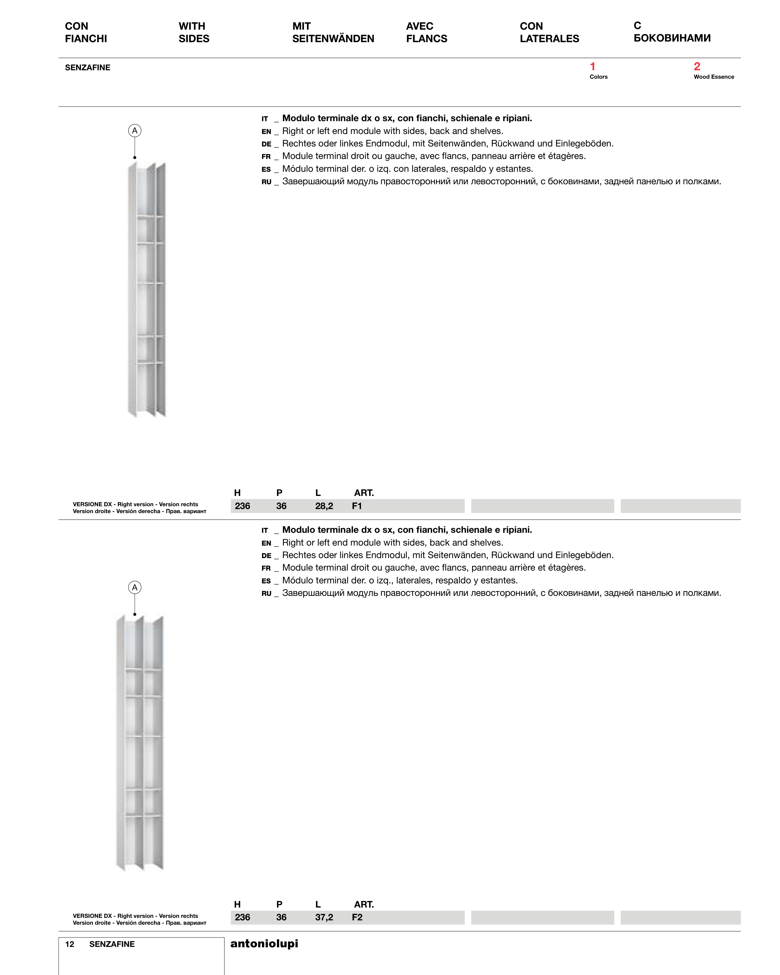 IT _ Modulo terminale dx o sx, con fianchi, schienale e ripiani.