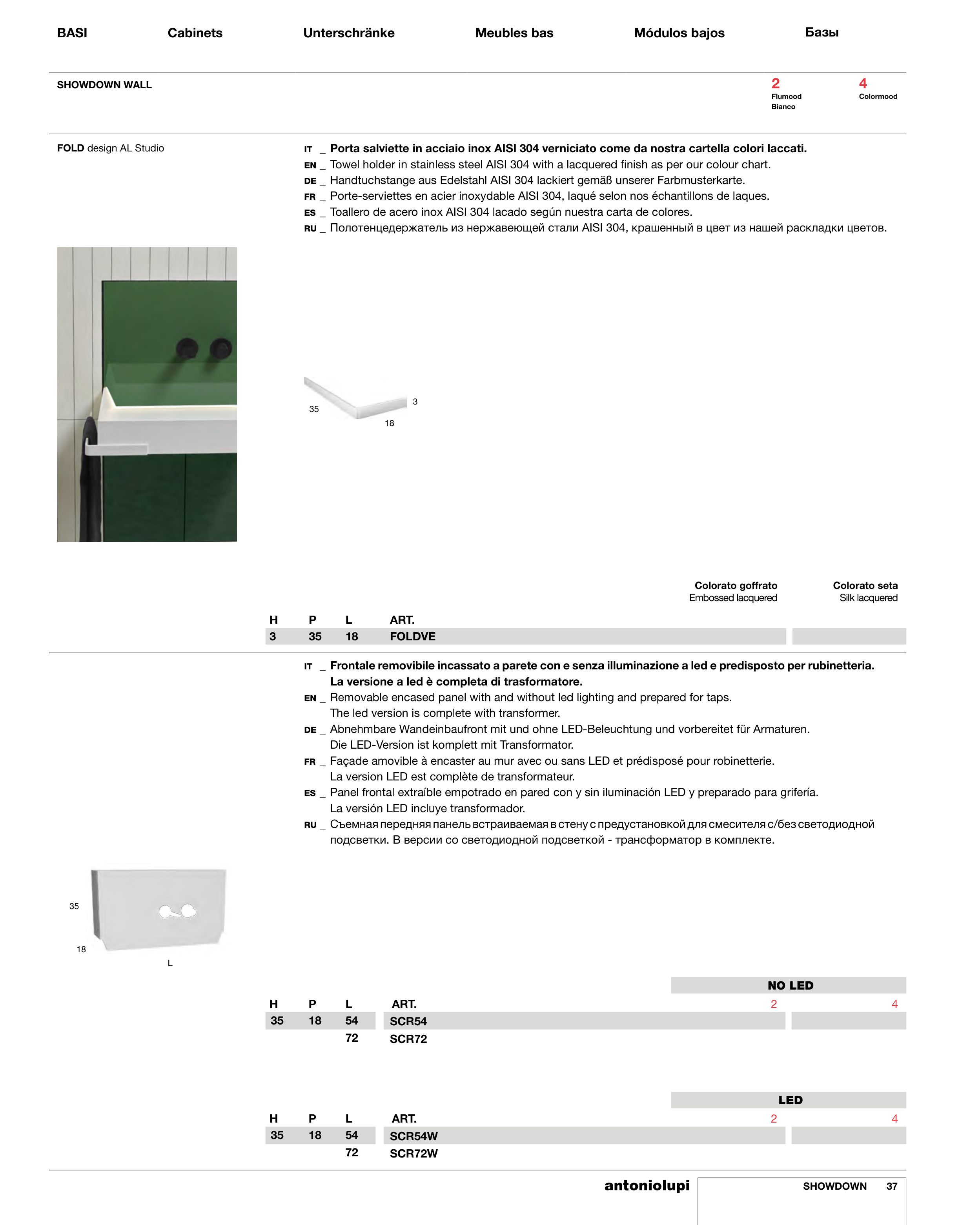 IT _ Frontale removibile incassato a parete con e senza illuminazione a led e predisposto per rubinetteria.